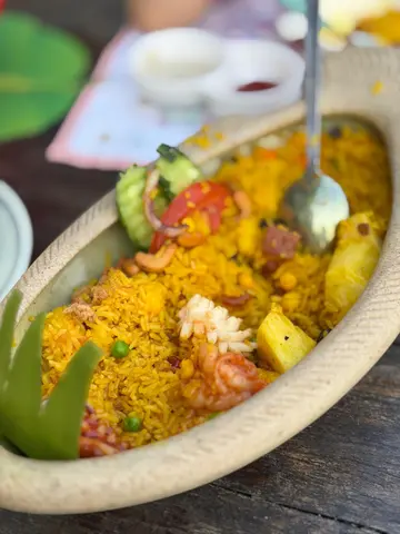 今日晏晝無野做,渣左架車去鹿頸游車河,落返黎有 點肚餓,見呢間泰國菜有得泊車,門口裝修又幾靚, 就入去試下。泊低架車,緊係坐室外啦,涼涼地,雖然有太陽但係 餐廳有陽蓬遮住點解要寫食評因為食左三樣野我都覺得好夠味,好似 泰國一樣,師傅係廚房行出來我都見到係泰仔,果然 係真泰國菜。叫左個香草辣肉碎炒飯,好入味,食唔停口,加埋隻 流心蛋,100分跟住黎個菠蘿炒飯,好豐富,好大份,炒得好有鑊 氣,坐出面都聽到廚房入面既炒爐聲,勁連碟菜都 炒得好香,埋尾整個椰青坐左個半鐘,出面仲可以食 煙,呢間真係力推…Read More