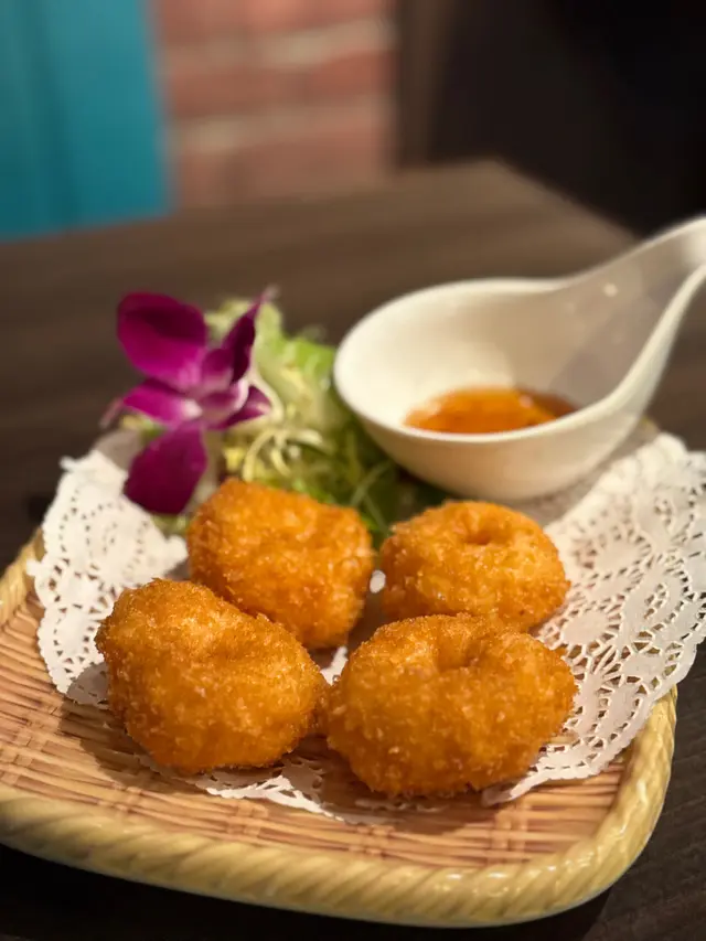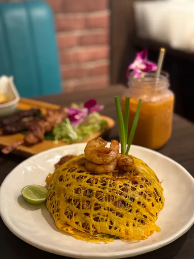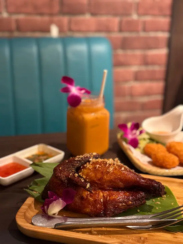九龍灣🚇呢間「泰廚房子」🍴係區內十分之俱人氣嘅泰菜館🇹🇭,佢嘅裝修走簡約工業風🏭,紅磚同埋水泥墻面再加上大面積嘅壁畫,😎感覺都幾型格。佢哋嘅泰式奶茶☺️,杯身用玻璃瓶盛載,奶茶味道香濃帶🤏少少獨特煙燻木質香,甜度適中,飲落好順滑😋。椰乳雪糕紅豆冰係店內熱賣🍹飲品,椰奶香濃加上煮到起沙嘅紅豆🫘,十分之香甜,頂部仲有幼滑嘅雪糕球🍨,夏天飲特別爽。前菜我哋揀咗🇹🇭經典肉碎生菜包,肉碎以豬肉🥩配香菜、檸檬葉等炒香,包入爽脆生菜葉🥬,入口清新帶微酸微辣,口感層次好豐富🤤。沙嗲串燒🍢係佢哋自家醃製嘅,雞肉🍗嫩滑帶黃薑香,牛肉都幾嫩🥩,牛味都幾濃郁,沾上帶微辣花生香嘅🌶️沙爹醬,真係勁啱我口味。主菜香茅鹽燒烏頭🐟,原條鹽燒分量十足,經香茅🌿同海鹽簡單調味後烤焗,魚肉鮮甜多汁又嫩滑😋,魚肚入邊仲塞滿香茅,風味十足👏。泰式炒鮮蝦金邊粉🍝賣相超靚,佢哋用蛋漿🥚做咗個罩蓋住金邊粉上枱勁吸睛,金邊粉吸滿🇹🇭泰式酸辣醬汁,鮮蝦爽口彈牙🍤,微辣酸甜滋味恰到好處好好味。最後泰式甜品拼盤🍮,包括椰汁🥥千層糕、椰汁西米糕同玫瑰花🌹千層糕,各兩件。椰汁千層糕🍰層層分明帶椰香🥥,Q彈軟糯。椰汁西米糕🍮椰香十足🥥,玫瑰花千層糕玫瑰味清新回甘🌹,甜度輕盈唔會膩。…查看更多