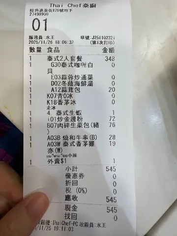 呢間泰國菜大家都一定行金魚街果陣實經過見到,以前仲會見到喺門口燒串燒,超香💕原本以為開喺咁旺既地方都會好貴或者唔正宗,點知有驚喜喎,性價比都好高💰1蚊優惠🎊1蚊換泰式生蝦/泰式海蜇/泰式木瓜沙律/泰式椰汁糕🔸6pm前消費滿$200選1款🔹6pm後消費滿$300選1款🦐泰式生蝦$11蚊就有4大隻🦐🦐,新鮮彈牙,配生蒜片正呀,超值🥘泰式咖哩2人餐 $3281️⃣泰式咖哩炒白貝2️⃣泰式炒通菜3️⃣冬蔭海鮮湯4️⃣薄餅(+$20)5️⃣青檸冰/香茅冰2杯道白貝炒得幾好🐚,每一隻蜆都幾大隻,配上泰式咖喱色香味十足💛咖喱裡面有蛋花,有蛋香又唔會太重辣味,反而襯托到白貝嘅鮮味,整體味道都幾OK,配薄餅食超級正炒通菜🥬保持咗爽脆口感,夠香辣🌶️🤤調味亦唔會過重,令通菜嘅清甜味都保留住,味道夠晒正宗地道🇹🇭冬蔭湯🍲好大煲,兩個人飲都差啲飲唔哂,仲要有勁多海鮮💯❗️有大大隻青口、蝦、魷魚、蜆等,酸辣味非常明顯🤤,海鮮夠新鮮,肉質爽口唔會梅🌊每一口都帶有泰國風味🐷串燒沙嗲豬$18🐥串燒沙嗲雞$18🐣泰式香茅雞翼$19🐽燒醋肉$19🐮泰燒和牛串$28推介❣️ 有好多唔同嘅選擇😎,呢度d串燒全部都好大串,佢地1串等於人地2串咁,d肉好厚身好大件,啖啖肉好正,火候恰到好處🙌🏻燒到焦香但唔會柴,會跟埋唔同嘅醬比你點,肉🥩唔會得醃料味,質素非常唔錯啊👻🔥overall:經過咗咁多次,終於會一會呢間泰國菜,本身以為係專比遊客食😂,點知入面都好多香港人🇭🇰、同埋熟客,而且啲嘢真係幾好食,仲要大件夾抵食…查看更多