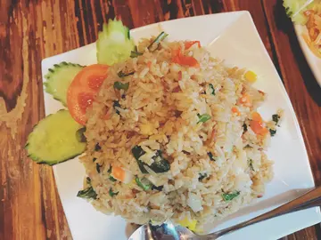 其實純綷路過,咁岩見到間泰式素食就試下,以為佢係細細一間,原來舖頭左邊後巷都有幾張枱,我去食個陣都坐滿人。叫左菠蘿炒飯,金邊粉同椰青水,總共大約170蚊。小小ge一間舖,估5到都幾驚喜。個金邊粉味道幾好,加埋佢附上個青檸,滋少少落去更加好味,但d粉比較黏在一舊,唔知係5係呢隻粉都係咁,不過味道塔夠;)菠蘿炒飯都好食,但d菠蘿就有d酸。平時食炒嘢食完會有好多油響碟底,但呢間隻碟完全無滴油情況。而家食完唔會口渴,呢兩點很欣賞:)