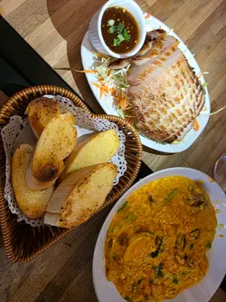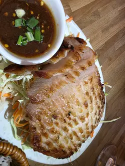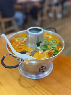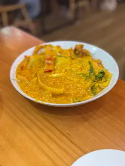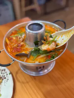 唔講唔知,舊舖因為市區重建,靜雞雞搬咗去福佬村道三個月~新舖真係光猛乾淨,感覺超chill。一入去就聽到老闆娘把聲,即刻有種返回老家吃飯嘅感覺。📌青檸梳打酸甜解渴又冰涼📌椰汁沙冰椰汁濃郁,夠晒清爽又解辣📌咖喱炒軟殼蟹軟殼蟹外脆內嫩,肉質鮮嫩多汁,咖喱汁辣度剛好溫潤不嗆,配上洋蔥同紅椒嘅脆爽,幸福感滿分📌薄餅香而不膩,蘸咖喱汁一齊食係永恒配搭📌泰式木瓜絲沙律木瓜絲細長清脆,淋上酸甜辣醬汁,夾著花生碎同乾辣椒嘅脆響,層次分明📌串燒沙嗲有豬牛雞三款,燒得外焦裡嫩,醬汁甜鹹平衡,全部juicy惹味📌冬蔭功湯底夠香濃,酸香撲鼻,大蝦彈牙鮮甜,菇類同香茅嘅清新香味層層疊加,熱辣辣飲一啖,解膩開胃📌芒果黑白糯米飯糯米飯Q彈,芒果清甜,配上椰漿甜度剛剛好,完美ending!味道依然咁正宗,價錢仲係咁公道,又唔收加一~睇嚟以後要繼續同街坊爭枱啦!…查看更多