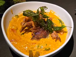 銅鑼灣有不少泰國菜館,要數又可打卡,又可品嚐到美味泰菜的,非‘’泰式食‘’莫屬。餐廳門口有一架泰國Grab,另外劃分了多個用餐區。其中一個區域裝修成洞穴般,非常具特色,打卡度十足。🥬泰式椰菜苗~囗感爽脆,濃郁的蒜香味與蔬菜的清甜相輔相成,沒有坊間椰菜苗的苦味或草青味。🦀黃咖喱軟殼蟹~軟殼蟹的酥脆外皮和鮮嫩多汁的蟹肉,配合香濃,甜辣中帶有椰奶及雞蛋香的黃咖喱,口感豐富,具多層次的風味。配飯或油酥薄餅便更完美。🐑🥩泰式南瓜汁伴燒羊扒~燒羊扒香酥肉嫩,味道帶胡椒香辛味,伴上以南瓜蓉、芋頭粒及香茅烹調而成的醬汁,辛香的果菜甜味成功帶出羊肉本身的獨特味道。…查看更多