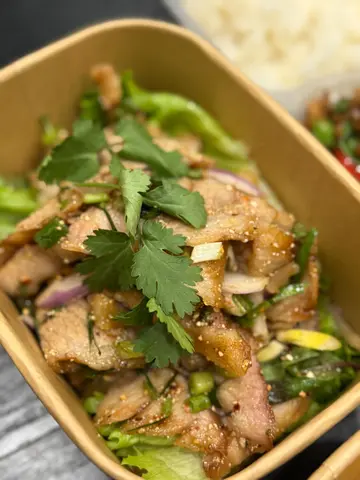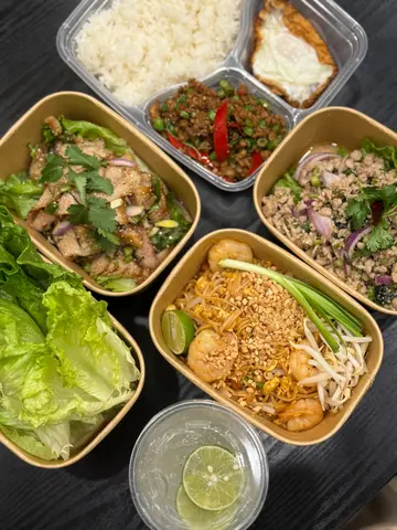 外觀低調既小店卻係正宗既泰國菜 ,主打外賣,即叫即炒,價錢仲好貼地!**🐷 豬頸肉沙律** 豬頸肉燒至微微焦香,邊位香脆,肉質軟滑唔乾。配上由薄荷葉、魚露、洋蔥、蔥、芹菜同花生碎的泰式沙律汁,酸辣開胃,夏天食好啱! **🍝 泰式炒金邊粉**金邊粉炒得乾身唔油膩,金邊粉煙煙靭靭配料有芽菜、蝦仁同蛋絲。加入青檸汁調味後酸酸甜甜,配上花生碎一起口感豐富。 **🌿 泰式炒通菜** 鑊氣夠炒得剛剛好,用咗蝦醬爆炒至鹹香, 通菜葉嫩無渣。份量足,外賣返到屋企依然熱辣辣! 整體味道正宗,泰國師傅手勢有保證,小店性價比高。外賣等約10分鐘快手。 …查看更多