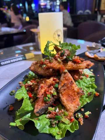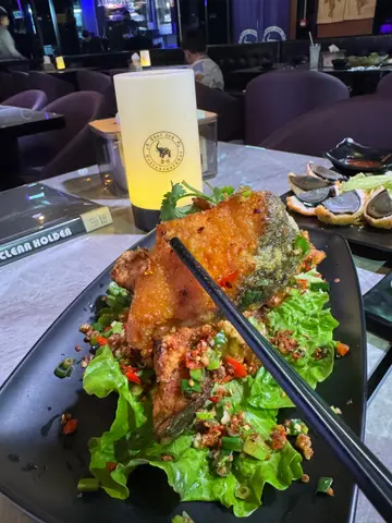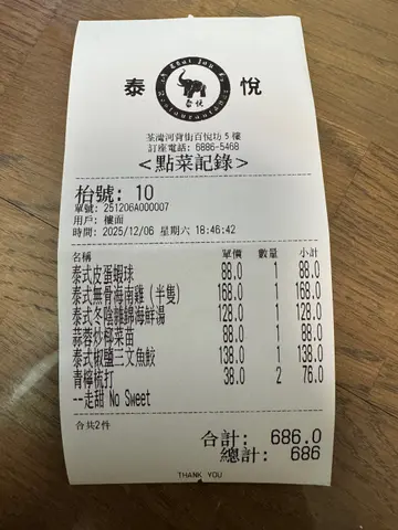 我都幾鍾意食泰國菜, 最近荃灣百悅坊開咗間泰悅音樂酒吧餐廳, 我同老公即刻去食咗佢哋幾款泰式地道菜式, 款款都幾大份量, 味道都幾惹味呀! 餐廳逢星期一伙休息, 逢星期二至日晚上8點至10點有駐場live Band, 同一大班朋友聚餐的話, 仲可以book卡拉OK房, 邊食邊唱歌呀! 呢度氣氛好舒服, 地方闊落, 非常適合朋友聚會。新張期間仲免收加一, 真係一個好優惠!鍾意泰菜或者想搵間有音樂節奏嘅地方食飯,呢度絕對值得一試。泰式皮蛋蝦球 - $88第一次食呢款菜, 兩者又幾夾, 蝦餅仲好彈牙, 炸到熱辣辣, 好脆口, 加埋流心皮蛋, 皮蛋嘅濃郁風味, 個配搭又香又惹味, 口感一流, 必點泰式酸辣醬真係一流。蒜蓉炒椰菜苗 - $88椰菜苗炒得剛剛好, 蒜香撲鼻, 椰菜苗保持嫉綠爽脆口感, 簡單好食又惹味。泰式冬蔭雜錦海鮮湯 - $128有超大隻嘅青口, 蝦, 魷魚, 鮮菇, 車厘茄, 非常鮮甜, 冬陰功酸酸辣辣頗惹味。泰式無骨海南雞(半隻) - $168大大一碟感覺抵食, 雞肉嫩滑無渣, 雞皮金黃透亮, 一口咬下爽脆不肥膩, 而且皮下帶有啫喱狀膠質, 去骨海南雞啖啖肉方便食用, 大滿足, 加上店家特調嘅泰式酸辣醬夠惹味, 好美味呀!泰式椒鹽三文魚鮫 - $138椒鹽三文魚骨鮫, 好大碟而好香, 炸得好香脆, 入面仲好嫩滑, 椒鹽料頭好惹味, 怕腥的話要新鮮熱辣炸好即食, 如果送酒就一流。青檸梳打- $38 飲品方面, 青檸梳打清新解膩, 飲完之後好舒服。…查看更多