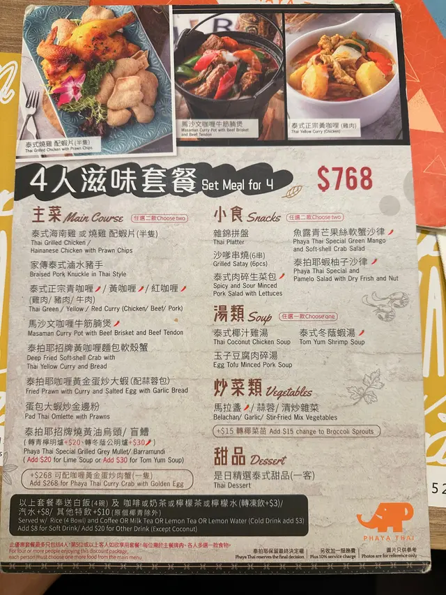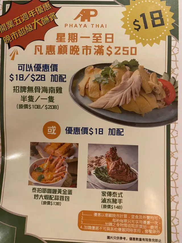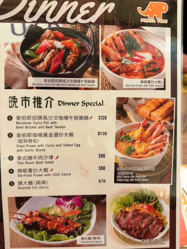今日相約了朋友吃飯,為方便大家,我們就來到黃埔找吃的,很久沒有吃泰國菜,所以我們找了一間泰國餐廳。一坐下,侍應非常有善,介紹了套餐給我們,但我們最後還是 A la carte. 🕊️ 沙嗲串燒(豬肉/雞肉/牛肉) 串燒非常好吃,一點也不乾,而且還好Juicy 🕊️ 泰式燒雞配蝦片 這個燒雞值得一讚,金黃色脆皮,肉質嫩口 🕊️ 泰拍耶招牌黃咖喱麵包軟殼蟹 這個一定要點喔,軟殼蟹脆口,一點也不油膩,麵包完全吸收了咖喱汁精華,吃得我們津津有味🕊️ 蛋包大蝦炒金邊粉 我們剛剛四個人,每人一隻大蝦🍤 大蝦彈牙。另外我們用了黃咖喱麵包軟殼蟹的咖喱拌金邊粉,這個食法非常好吃 😋🕊️ 椰汁西米糕 這個有少許失色,不是傳統包法 整體來說,我覺得這間泰國餐廳值得再來 …查看更多
