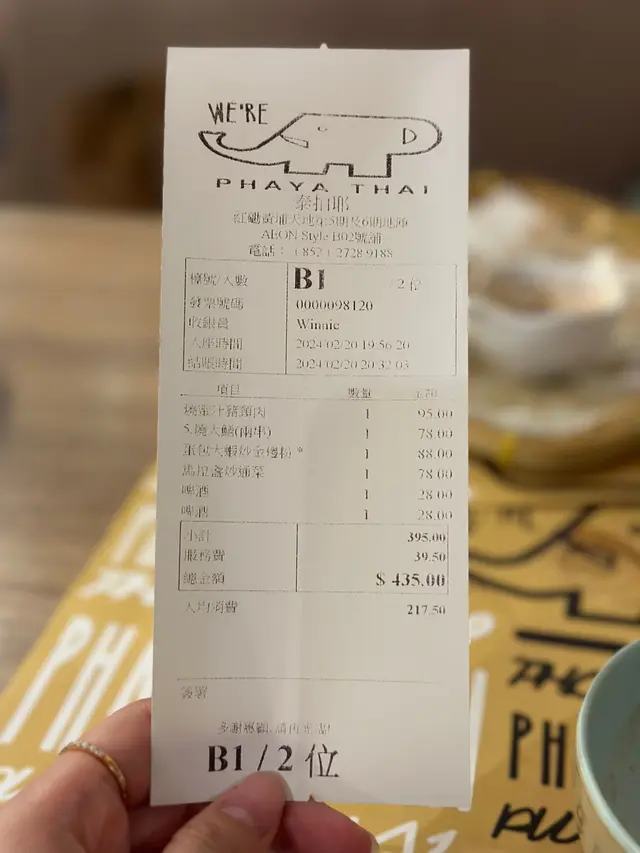 泰拍耶 (紅磡) 網上訂座即賺Rice Dollars 網址: https://s.openrice.com/QrbS0mly4W0 地址: 香港紅磡黃埔天地第5及6期地庫AEON StyleB02號舖 電話: +852 27289188