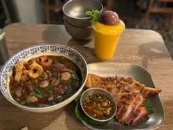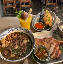 上網睇到有人推薦和牛醉貓炒河好吸引,一於搵日嚟試吓先,攞過米芝蓮,平日夜晚7點半已經排長龍,不過等咗20分鐘就到我入座啦~和牛醉貓炒河 $128🐮🍜 依到嘅河粉唔係普通嘅炒河粉喔~ 河粉特別粗闊,口感亦較煙靭!和牛鮮嫩多汁,加上獨特的「醉貓」調味,簡直係人間美食!每一啖都充滿了驚喜,隔離左右每一枱都必點item😋!強力推薦俾大家!泰式蠔餅 $158勁勁勁大碟外酥內軟嘅泰式蠔餅🦪金黃酥脆嘅外皮,包裹住肥美多汁嘅蠔仔,一咬落去,卡滋卡滋嘅聲音真想錄埋ASMR🎶!搭配特製酸甜醬汁,令人胃口大開,兩個人都好難K.O.晒咁大份沙嗲串(雞肉豬肉各一半)$108🐔🐷🍢雞肉同豬肉都烤得恰到好處,肉質鮮嫩,充滿了炭烤嘅香氣🔥!沾上泰式辣醬,簡直係絕配!泰式椰子雪糕 $68香濃嘅椰子味,冰冰涼涼嘅口感,仲有糯米飯+新鮮椰子肉配搭,為依一餐劃上完美句號呀!❤️泰式奶茶 $48濃郁嘅茶香加上煉乳嘅甜味,完全係泰國嘅味道呀!💯 咁高質嘅食物$600內2人,價錢合理,食完已經想帶其他朋友嚟食啦!📍泰排檔 (中環)🔎中環士丹頓街6-8號地舖…查看更多