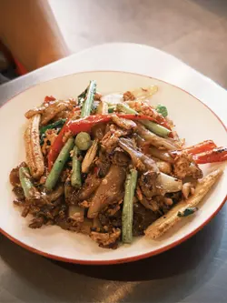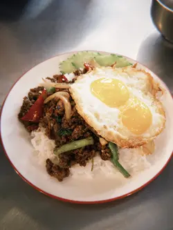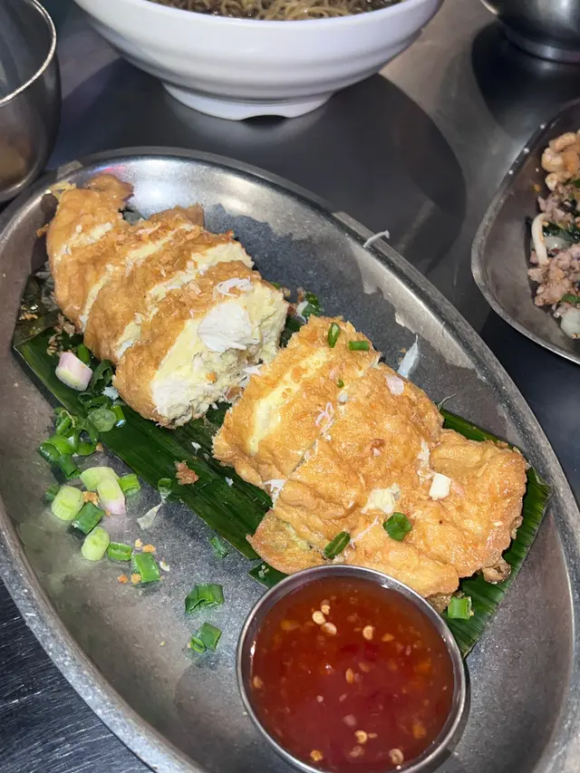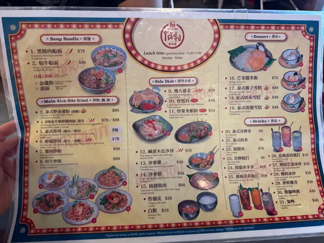 今日下晝同朋友嚟咗泰排檔。餐廳係米芝蓮推薦,成日大排長龍!牆上掛住好多泰國裝飾,真係有濃厚嘅泰國味。餐廳概念同泰國thongsmith一樣,供應各種地道泰國街頭美食,而且價錢好平。餐廳九成食材同香料都從泰國直接入口。廚房同樓面嘅人全部都係泰國人,特別係大廚,佢係米芝蓮出身,食物嘅質素一定有保證。和牛船面 $88呢碗和牛船面係招牌菜,金邊粉滑溜,湯底又鮮又甜,帶住濃濃嘅香料味,食到有香茅、檸檬葉等香料。和牛肉質好嫩,油花分布得好均勻,充滿油香。金邊粉口感更添彈性,吸收晒湯底嘅美味。其他配料仲有芽菜、通菜、牛丸,非常豐富。香辣金不換炒豬肉碎 $78呢度都係招牌菜,好出名!豬肉碎炒得香噴噴,熱辣辣,非常惹味!內裏有紅椒、洋蔥,口感都好豐富。辣味啱啱好,唔會太過刺激,真係一口接一口。最重點係面頭有兩隻流心太陽蛋,配埋蛋黃汁一齊食真係特別好味。醉貓炒河 $118河粉炒得恰到好處,滑滑地,帶點煙靭,好有鑊氣。醬汁好惹味,辣辣地,河粉吸埋醬汁嘅味道。和牛肉質嫩滑,芥蘭同紅椒爽脆,口感多元化。泰式奶茶 $8泰式奶茶好抵飲,甜而唔膩,茶香濃郁,好正宗。龍眼冰 $18龍眼冰清爽可口,龍眼嘅天然甜味,加上冰冷嘅感覺,好解渴。…查看更多