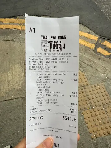 放工去油麻地拎嘢,等待期間掃社交平台見朋友去咗一間食店食泰菜話,仲話會再去;望下店名搜索下資料,在文苑街果帶⋯難得過海,又閒著就行去睇下乜狀況。大約晚上6點45分全店滿座,門外有一對情侶排隊等候,未見長人龍就試下。大約等了20分鐘就入內啦,雖然已經日落時分,但天氣開始熱,有成廿幾卅度,等位期間其實都熱;如果夏天嘅話唔會排隊⋯但入座時有有十多人嘅人龍了。煮湯粉麵/沙律區只有一位廚師主理。另外,店內環境都好逼夾,用餐期間可能要有被輕微碰撞嘅心理準備。鹹蛋木瓜沙律$88在灣仔的泰麵吃過鹹蛋木瓜沙律後念念不忘,見這家menu也有這一道沙律,二話不說就先點一份,我揀嘅係半隻辣椒辣度。 有點寄望⋯可惜略嫌唔夠鹹蛋黃,味道上不過不失嘅,講真無比較無傷害⋯今次來第一大目標係試個和牛船麵 $98價錢比起灣仔藍屋果間平了幾十蚊,所以要求都預先調節一下,整體是不錯的。湯底濃郁,但唔似得藍屋果間令我想飲晒啲湯;牛肉當然一定係唔同級數同肉嘅厚道和份量都有明顯差別。另有加一服務費。用餐完畢離去,嗰時繼有長長人龍等位。…查看更多