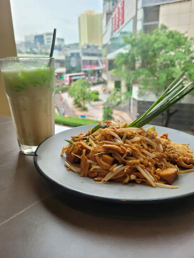餐廳的環境相當舒適,特別是窗邊位,開揚的視野讓人感覺非常放鬆。陽光透過窗戶灑進來,讓整個用餐氛圍變得愉悅,非常適合下午茶的時光。泰式炒金邊粉泰式炒金邊粉的味道整體來說不錯,但偏甜的口感讓我稍感意外。雖然炒得幾均勻,金邊粉吸收了醬汁的香味,但甜味略為突出,可能會讓喜歡重口味的食客覺得有點不夠過癮。配料方面,蝦和蔬菜新鮮,搭配得亦相當好,但若能再加一些香料或辣味,會更加提升整體風味。珍多冰至於珍多冰,甜而不膩,好飲。不過,講到價錢,下午茶的定價似乎欠缺競爭力,對於同類型的餐廳來說,可能會讓人覺得不太划算。此外,職員的服務方面亦有待改善,這影響了體用餐體驗。…查看更多