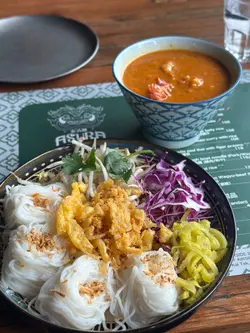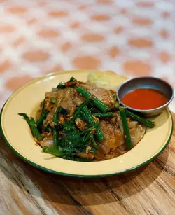 而家泰國咁危險都唔敢去 但又有啲掛住泰國菜🥺見屋企附近有間泰沾麵 咁岩又未試過🇹🇭難得週末得閒又無約就帶屋企人食個泰式Lunch❣️雞肉鑊氣炒河 $98同個名一樣食落都感受到夠鑊氣🔥正正夠鑊氣味道食落啖啖香濃炒河口感勁正🥰係有煙韌嘅感覺❣️招牌泰式沾麵 $108日式沾麵就試過 泰式就真係第一次見😂😂配上紅/青咖哩 而麵條部分選用素麵素麵可以令味道更加入味😙只需點少量咖哩已經好出仲有四大撮 好岩朋友們分黎食👫🏻❣️即燒豬頸肉 $88份量其實都多多地 一個人食都飽肚燒得勁香 肥瘦又均勻🐷咬口唔會韌 又唔會太過薄身❣️飛天炒通菜 $78之前係泰國食左啲勁辣炒通菜嚇怕左 呢到可以話係大家接受到嘅辣度🌶️岩曬啲唔食得辣 但又想食炒通菜嘅朋友仔通菜鮮嫩爽脆🌱夠惹味❣️泰式奶茶 $38❣️蝶豆花香茅梳打 $42本來無諗過試呢個梳打 其實係店員推薦🙈飲落帶點酸 同時帶點香茅味😋的確係開胃佢地又真係無介紹錯!!!…查看更多