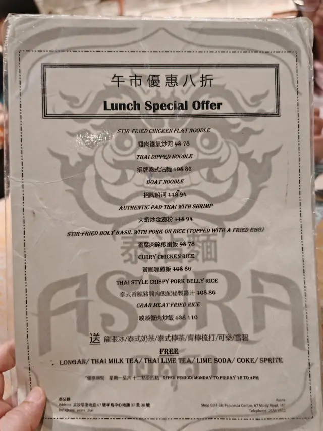 泰沾麵 (尖沙咀) 網上訂座即賺Rice Dollars 網址: https://s.openrice.com/QrbS0Mzq5W0 地址: 香港尖沙咀麼地道67號半島中心地下G37-38號舖 電話: +852 21559912