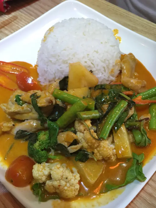 在香港想食泰國菜一點也不難,而深水埗除了泰潮也有好些選擇。今次就選擇一間泰國小店去試試。店鋪面積不大,堂食只有數張檯。店鋪雖小,但光顧時間人流不算多感覺還可以。快速地點了午餐紅咖哩雞飯連例湯及汽水-$40。例湯尚可,主打咖哩雞飯不錯吃,只是嫌為甜一點。而份量是對得起價錢。今次只能品嚐一碟飯,希望下次能試試其他菜式。查看更多