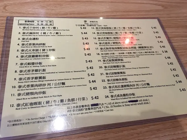 在香港如果品嚐泰國菜真味, 我一向都會到九龍城, 吃的都是有如置身Bangkok的水準而且價錢非常合理, 今日在深水埗碰巧看到一間有兩個"泰"字的小店, 知道快要到lunch hour, 趕快進內order! 泰式菠蘿雞粒炒飯午餐menu總是較實惠, 不太光猛的店, 但姨姨很nice, 不用多想已經選定了泰式菠蘿粒炒飯, 我們是第一枱, 等了一會便炒起. Typical的半圓型炒飯上碟style. 香味直撲出來, 每粒飯都炒得均勻有色水, 很多大大粒菠蘿(吃了不似罐頭菠蘿), 雞粒穿梭在其中, 但完全不乾, 又有我喜歡的提子乾, 整個感覺不油膩, 反而很fresh! 還有肉鬆, 提味up! 甜甜醎醎的, 份量不小惹, 製作一點不馬虎.Lunch價錢還包括一罐飲品, 說得出來的soft drink都在大雪櫃內看到, 吃熱辣辣的泰菜怎少得一罐凍冰冰的飲品啊. 下次再來^^查看更多
