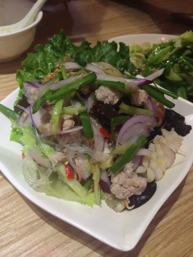 第一次到這間泰國菜,是因為首選那間沒開,便在附近找一間頂上。殊不知這樣一頂,我就把原本首選那間拋誅腦後了閒話不多說,食評嘛,食物才是主角呢,去啦~~ 先來泰式鳳爪,無骨是必需的,易吃一點,配上大量的茜芹、洋葱和車厘茄,立即變得fresh fresh酸酸辣辣的味道,忍不住吃完一口又一口~海鮮冬蔭公湯,為免太嗆喉,我們點了小辣,配料種類也算多,有蝦、魷魚、青口、蜆等等,泰菜菜式多以酸辣為主,因為泰國比較熱,酸酸辣辣便人胃口可開一點,但我自己比較喜歡清淡一點,之前試過的紫菜肉碎湯也不錯的。肉碎生菜包我們也是點了小辣,這道肯定是這裡必食,由第一次來到嚐到這一道後,每次來到必點,即使試其他菜式,也必定不可缺少生菜包;肉香,帶點香辣,最喜歡她是用籃子裝著生菜,而不是把生菜放在肉碎旁邊,這樣生菜便保持爽口,時間放得長一點,都不會被肉汁浸淋,非常好吃~~ 吃不得太辣的,記得要點小辣啊~泰式金邊粉配蝦,之前吃過一次是配雞肉的,當時認為雞肉沒什麼味道,可能是煲湯雞的關係,所以今次點了配蝦,但不知何故,這次的味道好像不及上一次出色,可能是天氣太熱影響胃口吧飲品點了龍眼冰,清甜好喝,也很解渴,讚~~順帶一提,要試這間泰國或者先打個電話去看看有沒有營業,因為試過幾次路過,她都沒開,要留意啊~查看更多