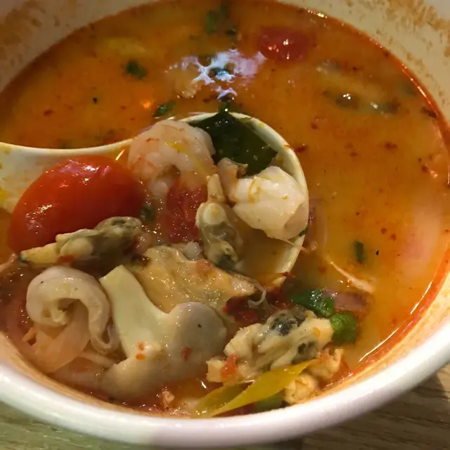 比起開係旺區嘅泰國菜或者連鎖式嘅泰國菜都有過之而無不及.雖然舖頭細細坐落係迫迫地,但係味道勝過一切.用心煮,再細嘅舖都做到你傻.炒金邊粉唔油,彈牙,香甜,足料. 唔洗多講.猪頸肉柚子沙律猪頸肉燒得啱啱好,外香内嫩. 柚子沙律加左小小椰汁,特別得黎又幾清新.蝦冬蔭公湯好正宗,辣度就你自己揀喇.多蝦多配菜,good!泰式明爐烏頭酸甜,香料之外有小小猪肉碎,魚肉重好滑.佢跟多一碗湯比你加落條魚度,個湯本身都幾鮮甜.最後忍唔住都叫左沙爹佢燒野有一手,猪牛雞都香得黎多汁.個沙爹醬係重點,花生味出曬黎呀.👍🏼👍🏼👍🏼順帶一提,佢啲蝦好新鮮,一啲啲雪味同霉都冇呀.查看更多