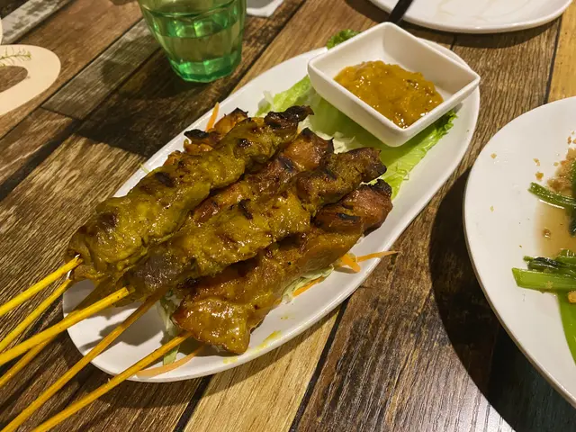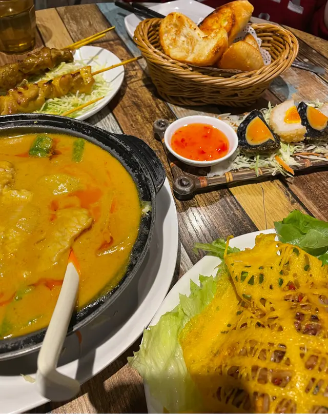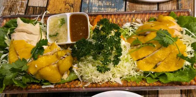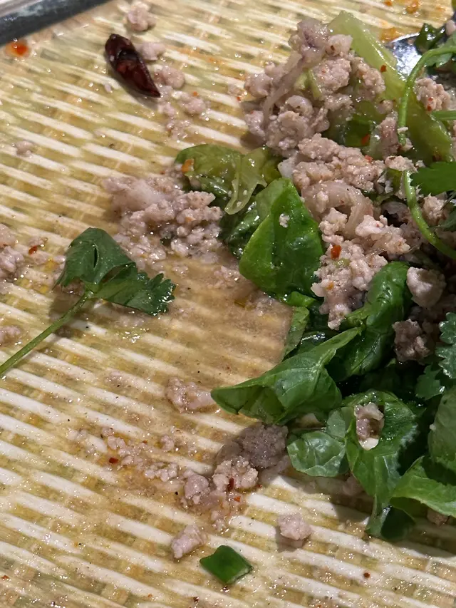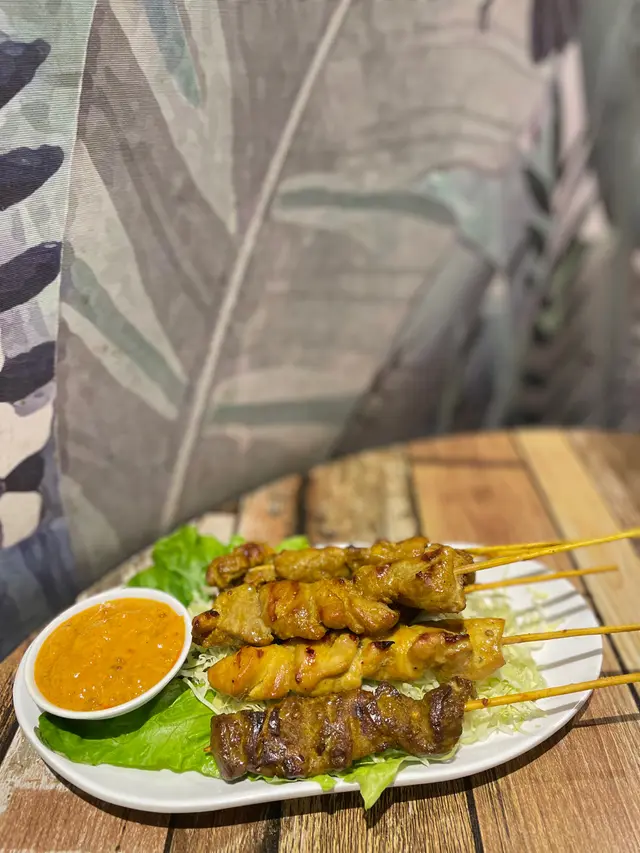 都有一段時間沒有來到位於佐敦的泰泰了,是日星期六晚特意來食晚餐,一如以往建議大家先預訂座位以確保可以直接入座。網上可以直接看到餐牌,有需要的可以預先跟餐廳預留菜式。蒜蓉炒通菜($76)的蒜香味濃郁,不過通菜不算幼嫩,需要點耐性咀嚼。必點的串燒沙嗲(半打)($98)一如以往熱辣辣又夠淋,沙嗲醬花生味突出幾好食:)另一款我們幾喜歡的菜式就是泰泰燒雞(一隻)($288)。餐廳以一隻大碟鋪平一隻雞,燒過的雞肉有點焦香得來裡面的肉質仍是juicy軟嫩的,沾點泰式甜辣醬很是惹味