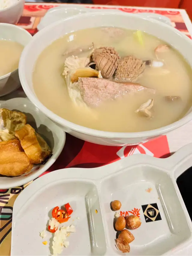 坦白嚟講係有少少失望嘅,因為同之前呢度同一間食店裏面叫嘅麻辣燙嘅份量,係完全唔係嗰件事。個人嚟講覺得佢哋唔係好正宗嘅新加坡口味肉骨茶,因為個湯只係得個白胡椒嘅味道,冇乜嘢藥味。略嫌份量比較較少因為佢主要係得豬肚,而豬腰只係得一嚿。如果係以新加坡、馬來西亞菜做主打嘅話,就真係要做返佢哋嘅風味,否則就俾人一種感覺好似有啲夾硬嚟做外行人做嘅嘢。同埋我好疑惑,如果係餐廳名-新加坡餐點為主打嘅話,點解唔係油飯呢?希望餐廳可以俾多一個選擇俾食客。…查看更多