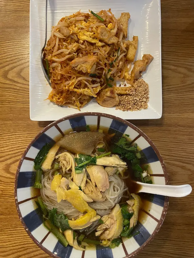泰式雞肉炒金邊粉+海南雞泰式船湯金邊粉