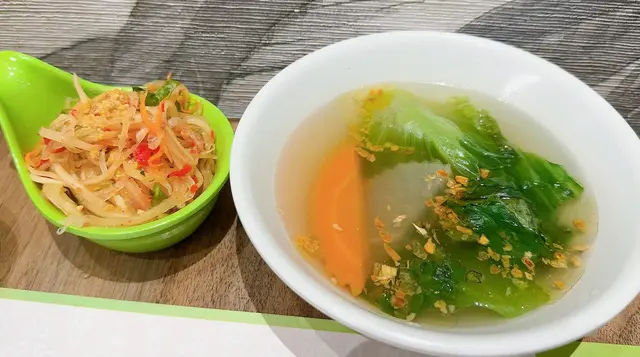 左:泰式木瓜絲沙律 右:上湯時蔬