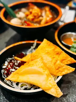 🔹️今日到尖沙咀 “泰濃麵“ 下午茶🥢 店內充滿泰國風情💫 環境整潔衛生🌿 食物有水準👍 店員有禮👨💼👩🏻💼 價錢親民💰🔸️炸芝士雲吞🧀🥠炸芝士雲吞外皮炸至金黄酥脆, 包滿著濃郁鹹香芝士, 口感豐富😋🔸️青木瓜沙律🥗青木瓜沙律的味道是酸、甜、鮮, 香, 口感鮮嫩爽脆, 融合了青木瓜的清脆、花生和紅椒的香氣, 十分開胃🤤🔸️炸雞翼🐔雞翼炸至外皮香脆、肉質鮮嫩幼滑, 配上泰式酸辣醬So Yummy👍🔸️美國肥牛船湯薯粉🥩🍜美國肥牛肉質軟腍、味道濃郁、鹹、香、酸, 泰式船湯風味, 薯粉晶瑩剔透, 口感彈滑 ,還有脆口豬皮、鮮甜蘿蔔和彈牙魚蛋 😋🔸️黑豚肉金邊粉🥓🍜黑豚肉鮮香軟嫩、配鮮味清湯底、幼滑金邊粉、魚香味濃魚蛋、鮮甜蘿蔔和鮮嫩秋葵👍🔸️泰式特色糕點拼盤🍱拼盤以泰式椰汁糕🥥泰式班蘭糕🧆椰汁糕🥥 充滿濃郁椰子香味和椰奶香滑口感👍班蘭糕🧆 以新鮮的班蘭葉和椰子組合, 味道清香、口感Q彈滑嫩💕🔸️泰國香茅班蘭梳打特飲🧉香茅班蘭梳打特飲散發出天然草本香氣、入口清新甘醇🫰🏻…查看更多