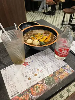 🔹️今日到尖沙咀 “泰濃麵“ 下午茶🥢 店內充滿泰國風情💫 環境整潔衛生🌿 食物有水準👍 店員有禮👨💼👩🏻💼 價錢親民💰🔸️炸芝士雲吞🧀🥠炸芝士雲吞外皮炸至金黄酥脆, 包滿著濃郁鹹香芝士, 口感豐富😋🔸️青木瓜沙律🥗青木瓜沙律的味道是酸、甜、鮮, 香, 口感鮮嫩爽脆, 融合了青木瓜的清脆、花生和紅椒的香氣, 十分開胃🤤🔸️炸雞翼🐔雞翼炸至外皮香脆、肉質鮮嫩幼滑, 配上泰式酸辣醬So Yummy👍🔸️美國肥牛船湯薯粉🥩🍜美國肥牛肉質軟腍、味道濃郁、鹹、香、酸, 泰式船湯風味, 薯粉晶瑩剔透, 口感彈滑 ,還有脆口豬皮、鮮甜蘿蔔和彈牙魚蛋 😋🔸️黑豚肉金邊粉🥓🍜黑豚肉鮮香軟嫩、配鮮味清湯底、幼滑金邊粉、魚香味濃魚蛋、鮮甜蘿蔔和鮮嫩秋葵👍🔸️泰式特色糕點拼盤🍱拼盤以泰式椰汁糕🥥泰式班蘭糕🧆椰汁糕🥥 充滿濃郁椰子香味和椰奶香滑口感👍班蘭糕🧆 以新鮮的班蘭葉和椰子組合, 味道清香、口感Q彈滑嫩💕🔸️泰國香茅班蘭梳打特飲🧉香茅班蘭梳打特飲散發出天然草本香氣、入口清新甘醇🫰🏻…查看更多