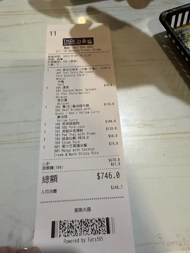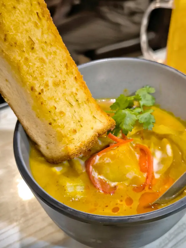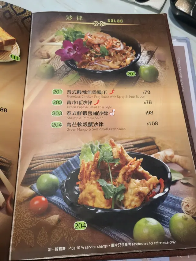 好抵食🤑足料又足份量既泰菜🇹🇭餐廳係泰國人主理,依餐真係泰滿足啦😌~•~•~•~•~•~•~•~•~•~•~•~•~•~•~•~•~•~•~• ▪椰汁雞湯 ($108)冬陰功外既經典湯品之一🍲嫩雞肉🐔 • 蕃茄仔🍅 • 香茅 • 檸檬葉...香料,椰汁🥥中和湯既辛辣,溫和中帶微酸🤍.▪麵包咖哩軟殼蟹 ($208)好有睇頭呀,好夠份量😳大大個索滿汁既麵包🥖,裝住酥脆軟殼蟹🦀 • 青 / 紅椒...,惹味濃稠既咖哩汁。旁邊仲有多舊烘脆脆麵包可清汁😚.▪鐵板蠔餅 ($138)飽滿脹卜卜既蠔肉🦪,金黃酥香邊邊既蛋🥚底有芽菜,點甜辣醬食。.▪馬拉盞炒通菜 ($78)通菜索晒汁,微微辣帶蝦香🌶️🦐。菜另可揀泰式 / 蒜蓉炒🔥.▪午餐Set Lunch ($38起)有多款飯餐🍛 • 湯粉🍜,包埋野飲(咖啡☕️/茶🥤).▫️ 鮮蝦炒金邊粉 ($60)好大碟!大蝦🦐 • 豆乾 • 韭菜...炒得乾身唔油🧡旁邊有花生碎🥜 • 糖,有齊鹹 • 酸 • 甜好有泰國感覺🇹🇭.▫️ 泰式炆豬手飯 ($65)好多舊QQ彈彈既連皮豬手🐷,表面有令令油光。炆煮得入味鹹甜適中,肉又夠淋🤎仲有半隻蛋🥚 • 醃菜 • 菜🥬.▪小食▫️無骨鳳爪沙律 (跟午餐加+$38)泰式酸辣汁,酸酸辣辣好開胃😝.▫️泰式春卷 (跟午餐加+$22)幼長春卷皮炸脆脆💥包滿蔬菜。點埋泰式甜酸醬,香口好快清左🧡.▪泰式特飲 (跟午餐加+$12) ▫️珍多冰 : 綠色粉條Q彈爽爽💚▫️咸檸七 : 鹹鹹甜甜,有汽夠GurGur🫧.~•~•~•~•~•~•~•~•~•~•~•~•~•~•~•~•~•~•~• 🔺午餐(星期一至日 11:45 - 17:30)免收加𝟏𝟎%服務費🙆🏻♀️ ~•~•~•~•~•~•~•~•~•~•~•~•~•~•~•~•~•~•~• …查看更多