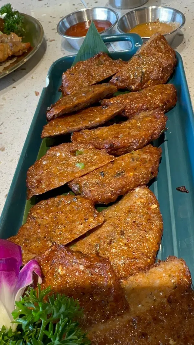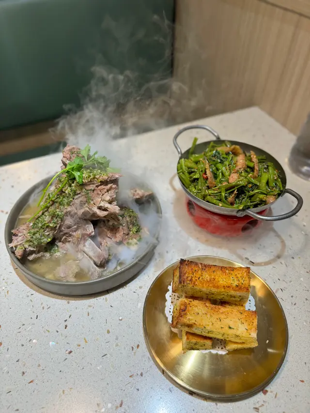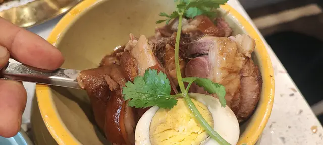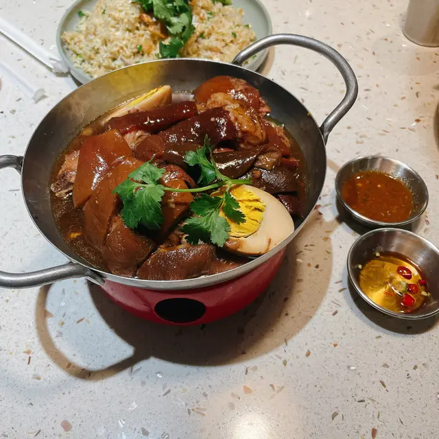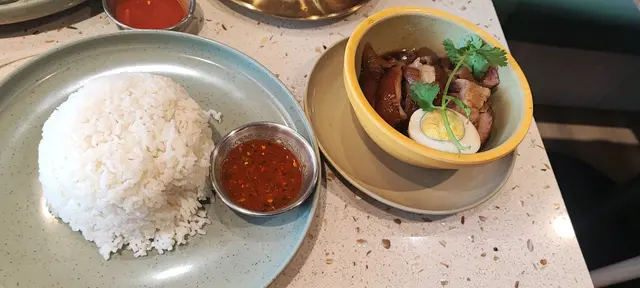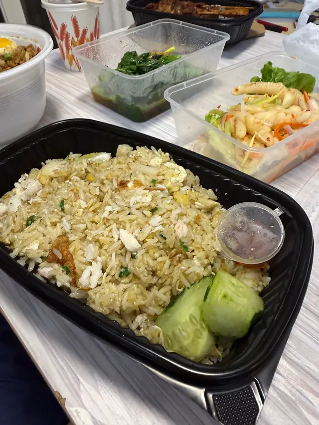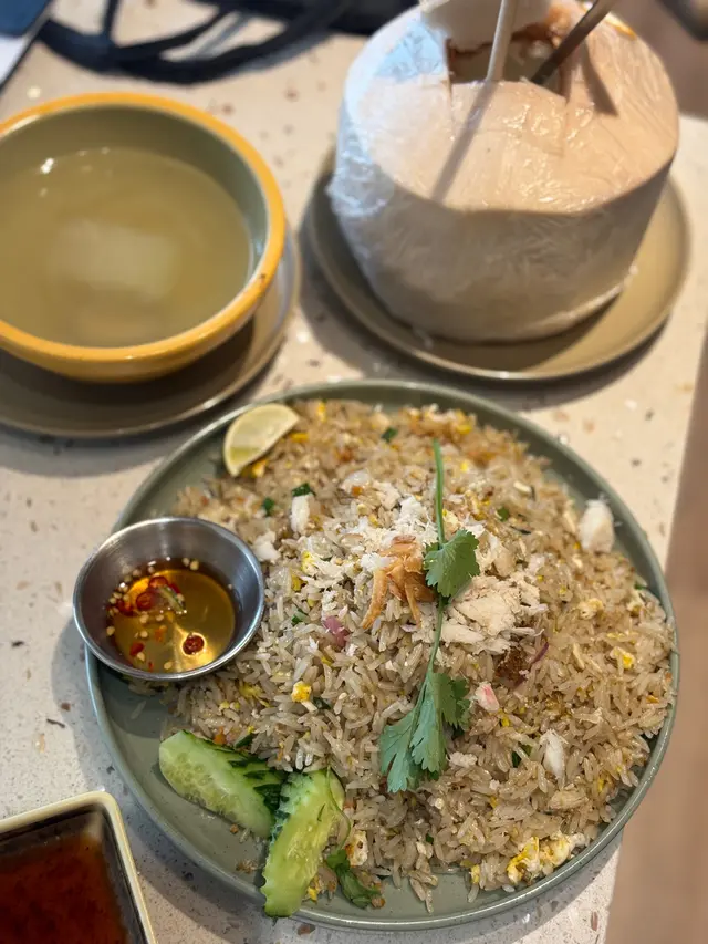 泰然是觀塘區屬於較受歡迎的一家隱世泰國料理,餐廳提供多款泰式美食,包括頭盤小食、燒烤、沙律、咖喱、海鮮及主菜等。曼谷火山排骨:份量十足,排骨的口感軟嫩、多汁,豬肉可以輕鬆從骨頭上分離,入口即化。排骨經過長時間燉煮,肉質不柴,咬起來有咬勁但不硬。排骨上淋有特製的酸辣醬汁,醬汁帶有魚露的鮮與羅望子的酸甜,還有青辣椒的辛辣刺激,搭配檸檬汁提升酸辣層次。無骨海南雞(半隻):海南雞雞皮爽口,帶有彈性且富含膠原蛋白,雞肉鮮嫩滑溜,入口即化,肉質嫩而不柴,適合搭配醬汁享用,味道會更豐。招牌蟹肉炒飯:炒飯粒粒分明,整體炒得乾身且不油膩,有鑊氣,蟹肉份量不少,味道香濃鮮甜,入口能感受到啖啖蟹肉的鮮味。…查看更多