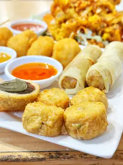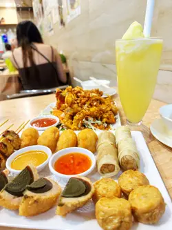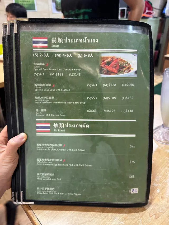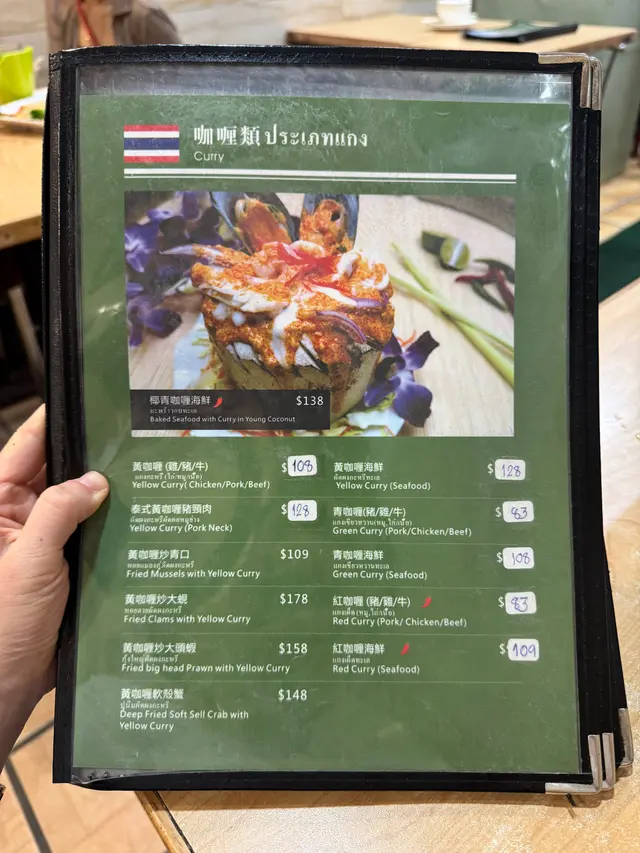 呢間係刷下social media見人介紹,我係比佢個五色芒果糯米飯吸引去食架..去到仲要齊人先可以入去食,入前要拎飛,再等齊人,如果你地一開始去到就齊人可以好快入到去,如果唔係都等幾耐架.我地入到去,就一次過叫哂d野食,都要等幾耐下,先上菜架.我地都叫左幾多野食下泰式菠萝沙冰+珍多凍,清甜爽口,菠萝香味濃郁帶點微酸,冰沙細膩冰涼,吃起來清新解熱又帶果香生熟蝦刺身拼盤,泰式生蝦就食開冇變架啦,完成冇腥味,但難得有炸蝦頭,好脆好香!good馬拉盞炒通菜 正常水準,軟殼蟹炸得酥脆,配以帶椰香且微辣的咖哩醬汁,鮮味濃郁又不搶蟹香配埋蒜蓉包,好美味.燒牛肉,大火快燒,能鎖住肉汁,肉質juicy又嫩;先撒鹽和胡椒再燒,味道更香濃.仲有個咸蛋黃炒細蝦,蝦嫩炒至彈牙,再混入鹹香濃郁的咸蛋黃醬汁,味道濃郁帶點鹹香又不油膩!!冬陰功湯底用香茅、南薑、檸檬葉同辣椒煮出鮮味,配蝦肉多,酸辣開胃又帶點甜.…查看更多