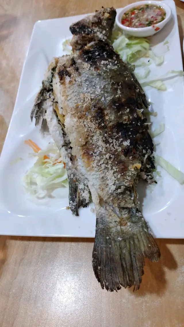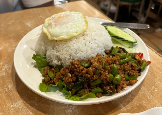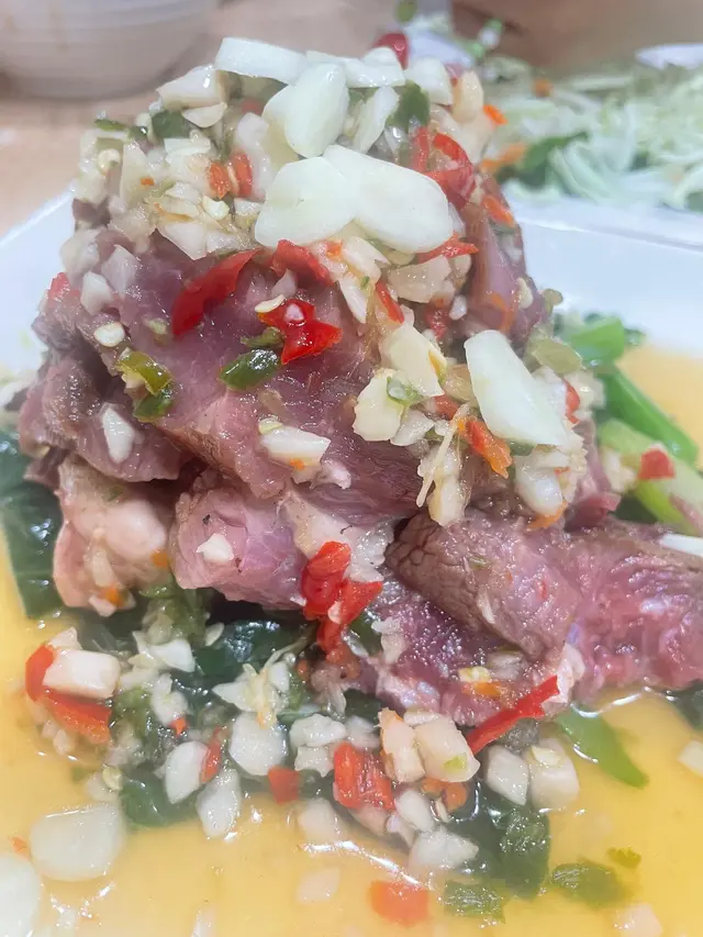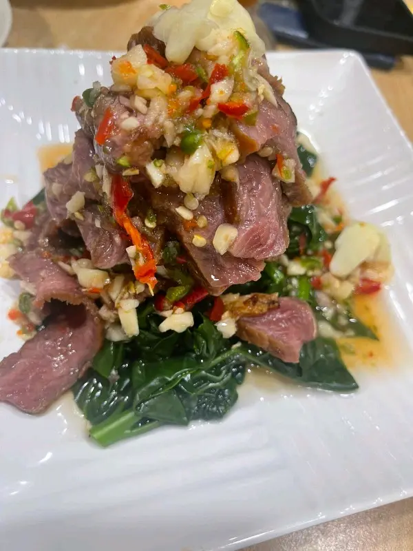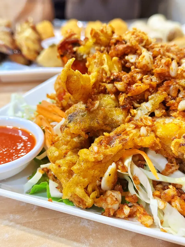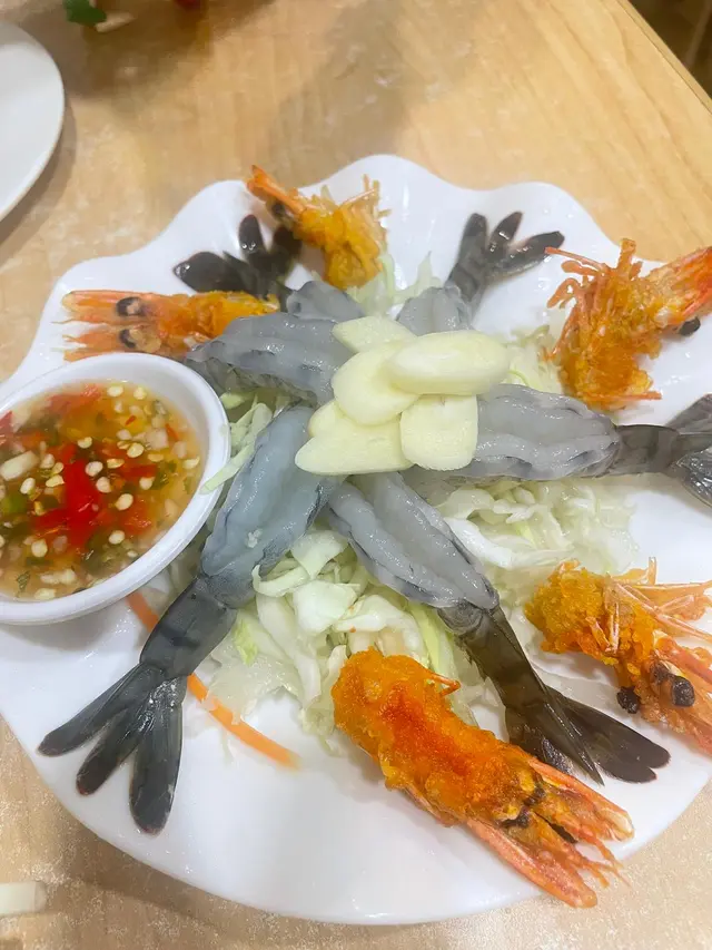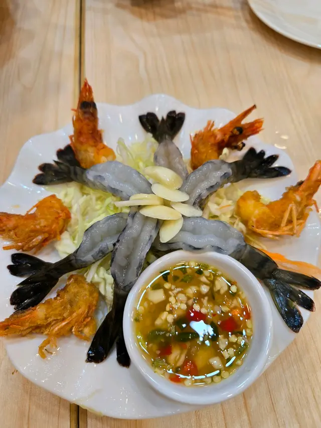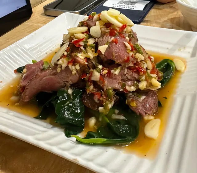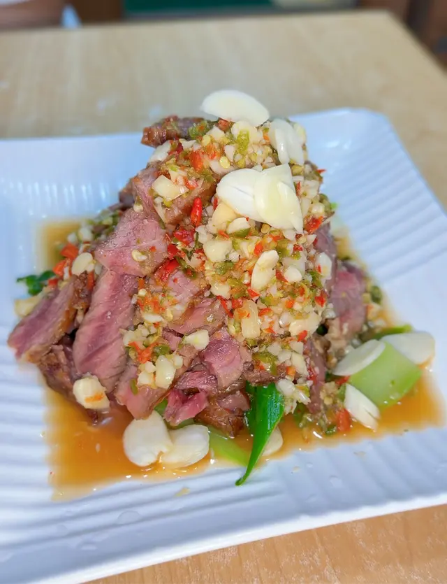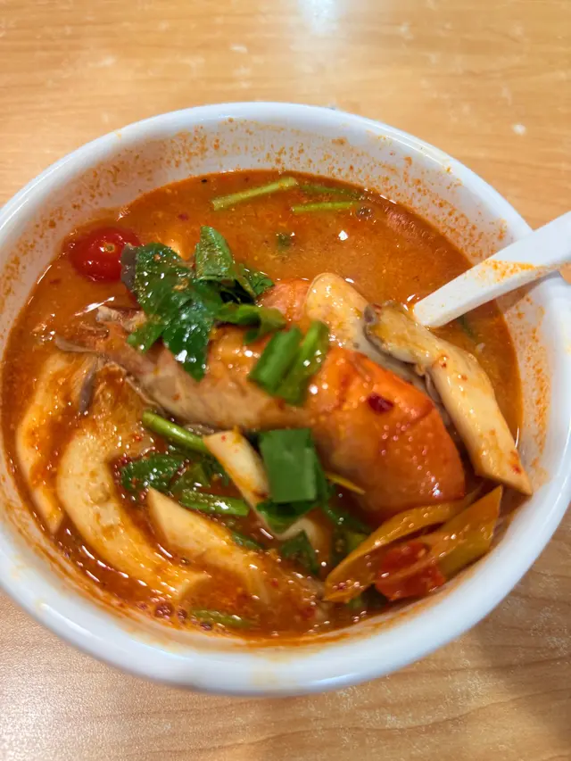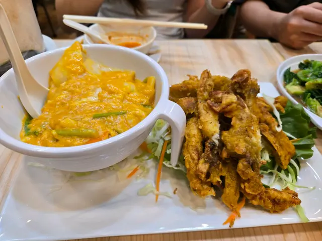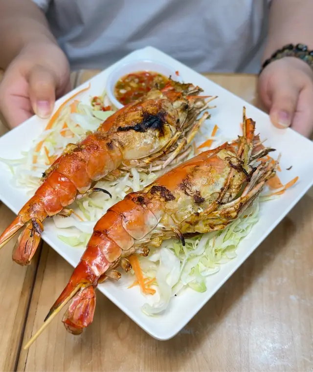 九龍城最出名就係食泰國菜,呢晚九點幾想食個宵夜,就搵咗呢間平民泰菜食吓 。餐廳舖面唔大,小店形式經營,但係都有好多菜式選擇☺️泰式燒豬頸肉豬頸肉有好多件,燒得有油香,沾上辣汁食就冇咁油膩🐷 黃咖喱軟殼蟹咖喱入面加咗蛋,所以醬汁比較稠杰,味道唔會好辣,老少咸宜🦀 軟殼蟹就炸到金黃酥脆 。我哋仲另外叫多份蒜蓉包,蒜蓉包點咖喱食就啱晒😉大頭蝦粉絲煲呢個上檯嘅時候出晒煙,夠晒熱辣辣 。粉絲煮得入晒味,啲餸就係底層,有大頭蝦同豬腩肉,係好有鑊氣嘅菜式😎蝦醬炒飯有滑蛋同肉鬆喺面,飯粒撈埋臘腸同蝦醬一齊炒,飯粒炒到上晒色,仲有少少蝦醬嘅鹹香。 呢間餐廳係開到凌晨兩點,如果夜咗收工或者想食個宵夜都可以過嚟食返餐啊😌…查看更多