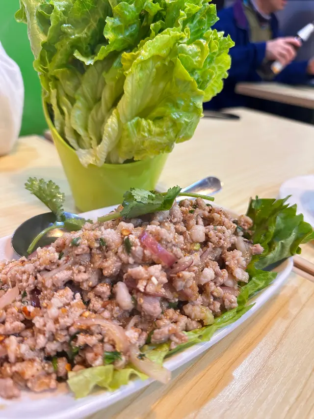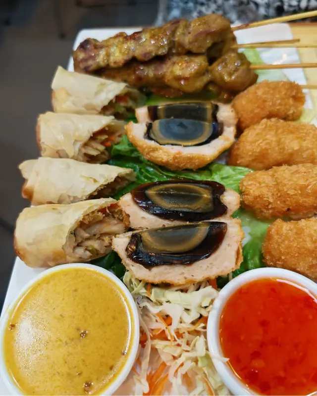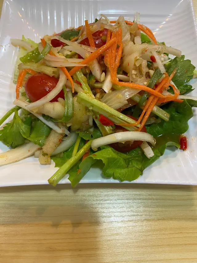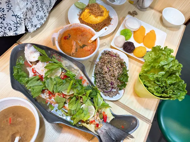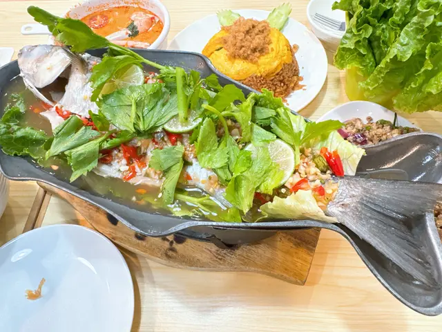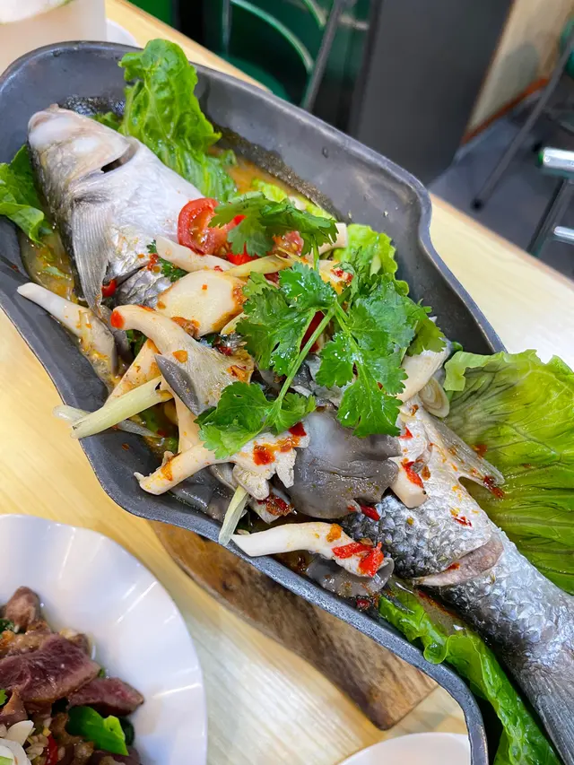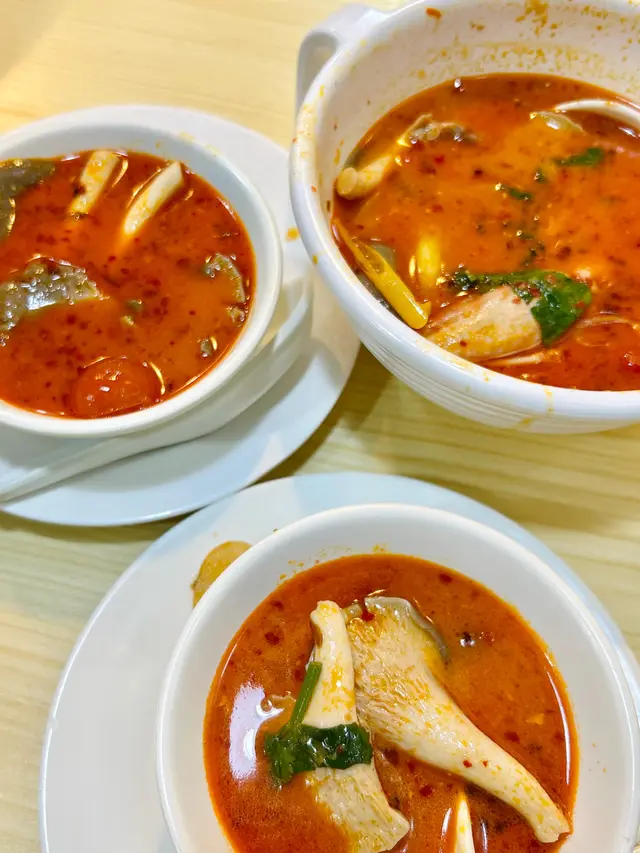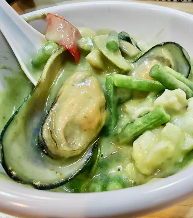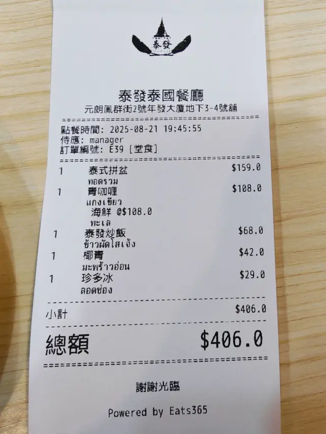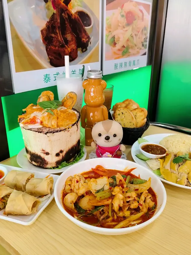聽到好多人講過元朗都有好多特式地道美食、就去咗搵好嘢食真係太多、周圍行望見這一間泰國菜、聽到朋友講過這間泰發泰國餐廳、係九龍城開到元朗到現在係第四分店🤔、門面綠色好有泰式地道風格、佢嘅每一款美食賣相都睇得吓、比起一般泰式菜都算唔錯、同時又望到店家剛剛第一日新開張☺️新舖張地道嘅味道用嚟做小食、咁有地道美食一定要試吓、泰式魚蛋、小熊泰式奶茶🤭!泰式海南雞飯 $55轉雞髀+$5呢一款海南雞飯望見賣相都唔錯、好有地道風味尤其是海南雞、配埋自家製醬汁就係靈魂、每一件雞肉肉質腍嫩外皮脆口、沾吓醬汁別一般的味道😋、佢嘅雞飯啖啖粒粒雞油香味😙、一啖飯一啖雞真的好正☺️!咖哩椰青海鮮 $148呢一款咖哩椰青海鮮睇得又食得😯、好特別賣相椰青色香味都有、裏面放咗不同配料青口、魷魚、鮮蝦、椰青肉條、整個滿滿咖哩汁送到上枱香噴噴😚、每一款配料沾滿咖哩汁、都好新鮮爽口又惹味😋!辣椒膏炒鮮魷$98呢一款炒鮮魷係用咗辣椒膏幾款配料嚟炒、真的好有地道美食風味🤔、整碟賣相色澤色香味都有😙、食到入口我以為好辣☺️、完全唔辣好惹味鮮魷煙靭帶點腍口、味道好正😋真的唔錯!泰式炸春捲 +$26呢兩款地道小食我最喜歡食、炸春卷外皮薄而脆口包裏不同配料、口感豐富沾吓醬汁令到味道更加好食😋!蒜蓉包$30呢一款蒜蓉包送到上枱香噴噴😚整件蒜蓉包金黄脆而香口賣相、入口啖啖蒜香脆點口感😋味道都唔錯!凍式奶茶 +$3珍多冰 $29呢兩杯凍飲係泰國地道飲品、奶茶味道特別比起一般港式有D唔同、珍多冰淡白色賣相、入口啖啖椰香青甜口感、加埋其它配料軟滑口感、兩者都幾好飲!佢嘅樽仔小熊奶茶賣相得意😍、載滿香滑濃濃泰味奶茶、入口香滑味道濃厚、配埋泰式魚蛋味道特別、口感爽彈加埋醬汁、味道比起一般令一種味道!…查看更多