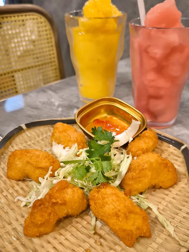 泰皇殿是一間平民泰菜館,沒有加一收費, 餐廳師傅全是泰國人, 可以品嚐到正宗泰國風味 , 雖然沒有豪華的裝修, 佈置簡潔明亮 , 環境舒適 , 餐廳正進行優惠活動, 受到街坊粉絲支持愛戴。海南雞半隻去骨的雞肉和雞皮鮮嫩滑溜, 加上香氣四溢的醬油提香,口感更加滑順美味,讓人回味無窮。蝦餅剛剛炸起的蝦餅, 金黃酥脆, 香氣十足 ,蝦肉好Q彈, 啖啖海鮮的鮮味,搭配甜辣醬, 更添泰式風味。香茅雞翼雞翼外脆內嫩滑, 充滿肉汁 , 味道清新獨特,帶有淡淡的香茅香氣,令人食指大動。泰式燒烏頭 即叫即燒的燒烏頭,魚皮焦香酥脆 雪白的魚肉好嫩滑,搭配泰式特製醬汁,酸辣的味道令到魚肉更加鮮美, 十分好吃。咖哩炒青口(加$1優惠活動)雖然是一蚊優惠 , 份量十足 , 青口肉質鮮甜,搭配濃郁的咖哩醬,香氣撲鼻,帶有微微的辛辣, 最啱拌飯。椰汁西米糕口感綿密,椰汁的香甜與西米的Q彈,帶來清新的口感。芒果大菜糕軟糯的大菜糕 , 啖啖芒果的濃郁香氣,甜而不膩。龍眼冰清甜的龍眼冰,清甜解渴, 還有粒粒龍眼肉,給人清新冰爽的享受。…查看更多