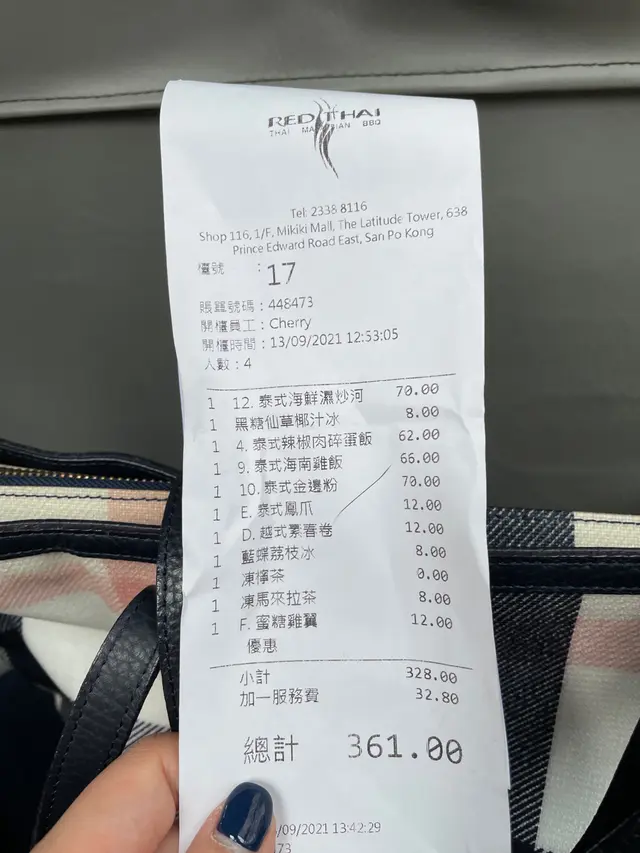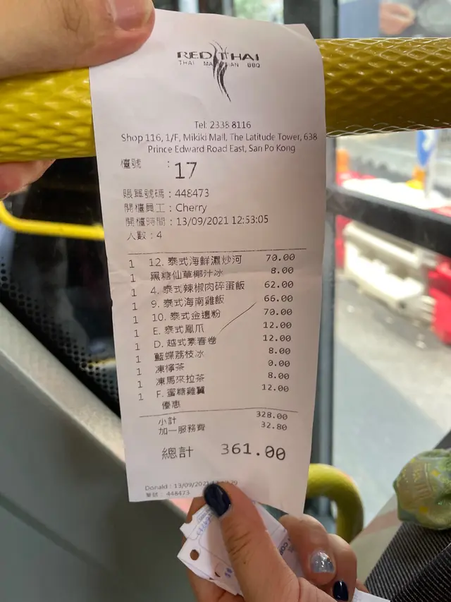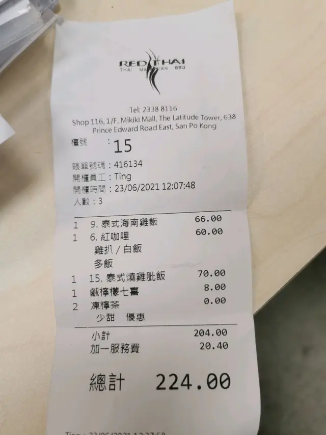 今日我嚟到泰紅餐廳食午餐遇到一件令人很不愉快事情😡😡作為一間集團/餐廳嘅基本原則食物/價錢 吾會系最主要因素😁禮貌吾好及趕客我覺得真系不能接受😊我入到嚟開檯時間系12:53:05 我就當你地有限人地1個鐘進食或者系要交還檯比下一批客人😄但你地餐廳有一名高高戴眼鏡頭髮短既大嬸居然同我地講就話 要埋單啦 出面有好多客☺️但系我還檯時間系13:53:05秒仲同我講12:05分入座?點計出嚟?我覺得這間餐廳都好識請 計數禁叻嘅樓面一d禮貌都無 果位大嬸同大排檔樓面有得比趕客走 仲要無禮貌😅永遠黑名單😊😊查看更多