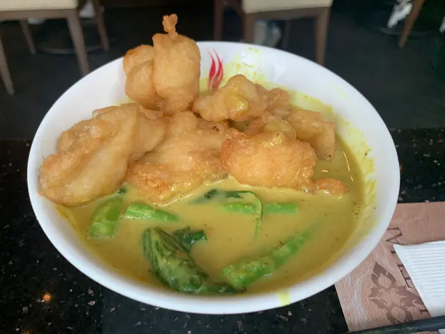 好耐無去新蒲崗Mikiki,可能因為附近啟德開始多人住,多左好多餐廳, 多左選擇, 有競爭,先有進步,係好事。今日下午同朋友一齊去食泰紅泰國菜,見門口有手工印度薄餅,應該唔錯。.🍚牛肉湯河牛肉係肥牛,份量都算多,湯底夠味,食完之後下午無超級口渴,佢應該冇落好多味精。.🍚泰式青咖喱配魚柳及油鬆餅朋友好食得辣,店員介紹青咖喱係最辣嘅,油鬆餅果然夠鬆脆,香口,一啲都唔油,並唔係急凍貨。.🍚 泰式紅咖喱配魚柳及白飯紅咖喱相對比較甜,魚柳都有好多舊,本身外皮比較厚同硬,但係加埋咖喱一齊食,軟硬就變得適中。.總括然而,套餐中包飲品,同埋送一個啫喱甜品,都值得來一試。查看更多