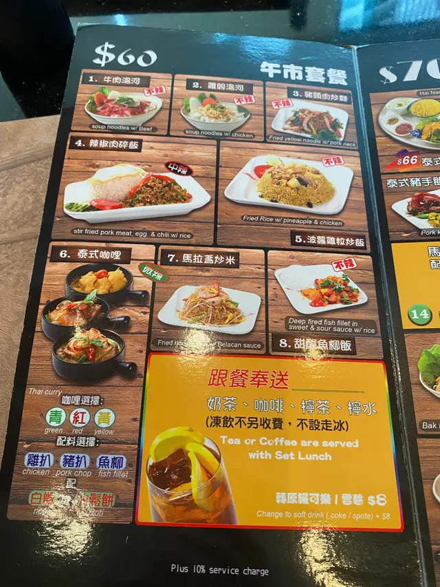 3人諗住食午餐,哩間未試過咪去試試囉。12點05分坐低。叫野食了,哩樣又話無,個樣又話無,個侍應話有個廚師無反工,所以部分泰式野無。算了,我點左泰式炸雞肶飯,飯係油飯。佢menu張圖d飯係放碟上,但上黎個飯係碗上,我諗住倒出黎,一拎,個碗好熱,睇埋d飯,顏色似隔夜整定,個一刻,我感覺係用微波爐翻熱。一食,果然,飯干,面頭飯熱,中間暖。唉,隻雞肶又係雪藏雞整。諗住隨便食左去算,我岩岩食完個飯,飲岩杯野。我朋友未開始飲。個侍應沖埋要我地埋單,同時收走曬所有野,我朋友杯野飲未開始飲都收左。仲要我地即時比錢。比左錢,佢未找錢,我已經企起身方便佢地執台,我企旁邊等找錢時,佢個垃圾侍應又走埋黎,要我出門口等找錢。哩間野永遠黑名單,永遠唔會去,出左門口睇下隻錶,12點38分左右。坐低33分鐘,仲衰過去茶餐廳。垃圾查看更多