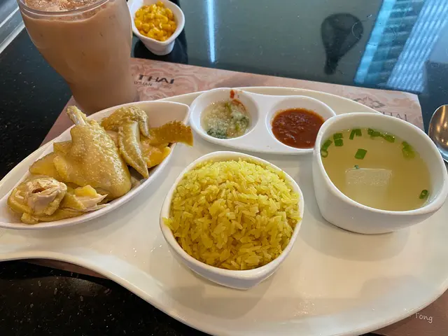 第一次在泰紅食海南雞,份量對於一個女生來說,很適合。雞肉一點也不肥,而且很鮮美。雖然沒有很多醬汁點雞肉,但姜蓉配海南雞已經很足夠。套餐配了湯 ,湯很美味,沒有味精味道。油飯有點乾。餐飲點了凍奶茶少甜,味道剛剛好,不會太甜,又有泰國的味道。餐廳的人流不多,適合三五知己靜靜地食晚餐。查看更多