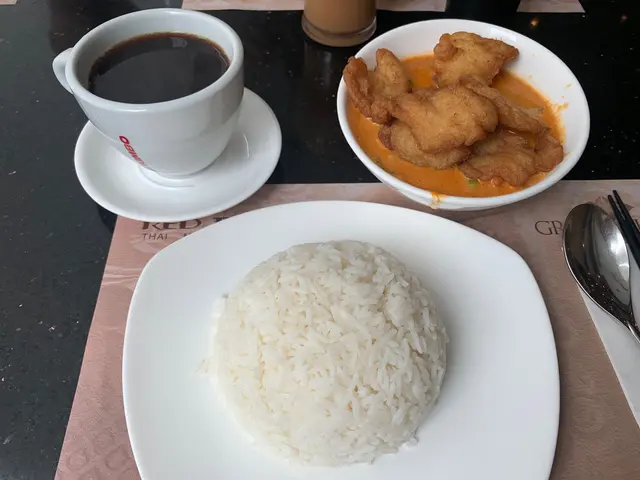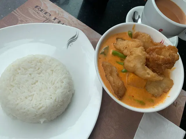 今日午餐去新蒲崗Mikiki食Red Thai,顧名思義即是食泰國菜,睇吓menu發現都有少少印度馬拉越南元素,多國菜。-泰式咖哩(紅)配魚柳,白飯👍🏻,因為我唔食得辣,紅咖哩唔辣,甜甜地,好香,配白飯或者油鬆餅一流。魚柳炸得夠脆,夠香口,怕熱氣可以浸下咖哩先食,除左魚柳,入面仲有好多蔬菜配菜。午餐set仲有跟飲品同一個小甜品,今日係荔枝味小啫喱,連加一$70唔使,無咩好投訴。******************************👍🏻好食 | 👌🏻可以 | 😔 難食評分 : 7/10簡評 : 平靚正泰菜午餐查看更多