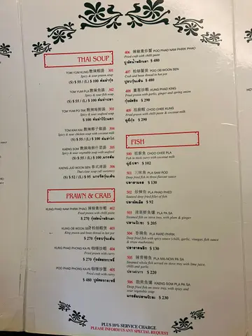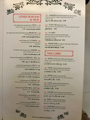 Summary: Authentic food, good fit-out and service. Pricing a bit higher than my usual target, but still reasonable.Goods: Fit-out is good. They serve hot tea for free of charge. Food is well presented and taste good - authentic enough with some minor adjumentments. Bads: Not a lot. However, for a stingy person like I am, I think I can find Thai food with better price (not better fit-out though, there's always some trade-off). Damage: The two of us spent HKD363 (incl. 10% SC) for lunch (public holiday), so HKD181 per person, but a note is we were very full!We arrived at around 11:55am and they were about just to open so we didn't have to wait at all. It was a Monday with public holiday, and they also don't have lunch menu. I can't comment if they have it for weekday though. The waitstaffs are a mix between Thais and locals, but I think the cook are Thais (after talking to the Thai waitstaff). They're all quite polite and service is good!.What we orderedWe ordered 3 dishes and extra rice. To be honest, this is a bit much for 2 persons, but we finished the meal anyways so I'd say if you're very hungry this is probably the right amount. The food was very fast (we're the first table afterall) and they all arrived at the same time. The first dish is the #101 Yum Woon Sen (ยำวุ้นเส้น) or spicy vermincelli salad at HKD70 (+10%). It is in snack section, so the portion reflects as such. It comes with one shrimp a few peices of squid, some minced pork, and plenty of peanuts (my wife was saying it's a bit much but I'm totally fine with that). We didn't tell them we're Thai at first so this is their usual recipe (usually They will spice it up for Thais), but I still think it's a bit spicy for the local (for me it is totally fine). Otherwise, I think it taste good - my personal preference is a bit sweeter (and I think most of what I had in HK is like that too). The vermincelli is nicely cooked, it's not too soft with a bit of snap to it. Overall it is authentic.The second dish is #303 Tom Yum Po Tak (ต้มยำโป๊ะแตก) or spicy seafood soup at HKD100 (+10%). This is a bit different to the usual Tom Yum most people think of. It is clear broth (no milk), no chilli paste (no red colour), usually very little sweetness, and has sweet basil added in. I personally order this any time I have the chance, as it's harder to get it right! This comes with a few pieces of shrimps, 2 pieces of big mussles, a few pieces of squid and fish, and straw mushroom. I'd say it's quite generous for the price! Taste wise I love it! It is exactly how it should be.... although as a real Thai I think it could be spicier, which most local would probably disagree with. Will definitely recommend.The thrid dish is #504 Pla Rard Phrik (ปลาราดพริก) or fried fish with spicy sauce HKD130 (+10%). I have mixed feeling about this dish.... On one hand, it taste quite good, but, on the other, it is not quite authentic (for its name). Normally Pla Rard Phrik will be unbattered deep fried fish, with spicy & sweet chilli sauce (usually only chilli, garlic, fish sauce, tamarind juice/paste and sugar); there are slight variety but not siginifant. The restaurant served battered deep fried fish, on sauce with straw mushroom, pineapple, and sweet basil. The sauce base tastes very similar but with the scent from sweet basil. Don't get me wrong, I still think it taste good, it's just not what I expected from the name, and I also can't think of a similar dish (maybe Pla Sarm Rod which is another dish they also have). I think the fish portion is a bit too little for the price, but it's probably because it's deep fried (more process = more time = more cost). The fish is also not very crispy. I'd say try other dishes instead, but no problem if you want this one. We also have these with #806 Khao (ข้าว) or rice at HKD30 (+10%) for a large bowl (feeds 2-3). Nothing much to say on this one, just typical good rice you'd expect in restaurant. They also serve hot tea (refill) at no additional cost. I forgot to take the menu photo, but others already did it so I hope it's all good!…查看更多