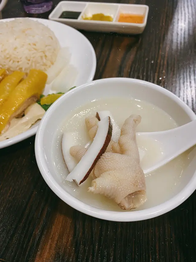 📍泰色食 - 炮台山/天后-🔸招牌海南雞飯 ($62)雞髀肉質頗為嫩滑 皮肉之間既脂肪形成一層啫喱狀口感👍🏻可惜既係雞胸部份稍韌 略嫌難咬 有少少痴牙既感覺油飯粒粒分明 醬料調味得宜 為軟滑既雞提升層次-🔸椰子雞湯 (隨餐附送)原本以為只係普通例湯一碗 估唔到呢個湯先係今餐飯既MVP雞湯十分清甜 完全冇任何油膩感椰子清香同雞既鮮味係完美配搭!查看更多