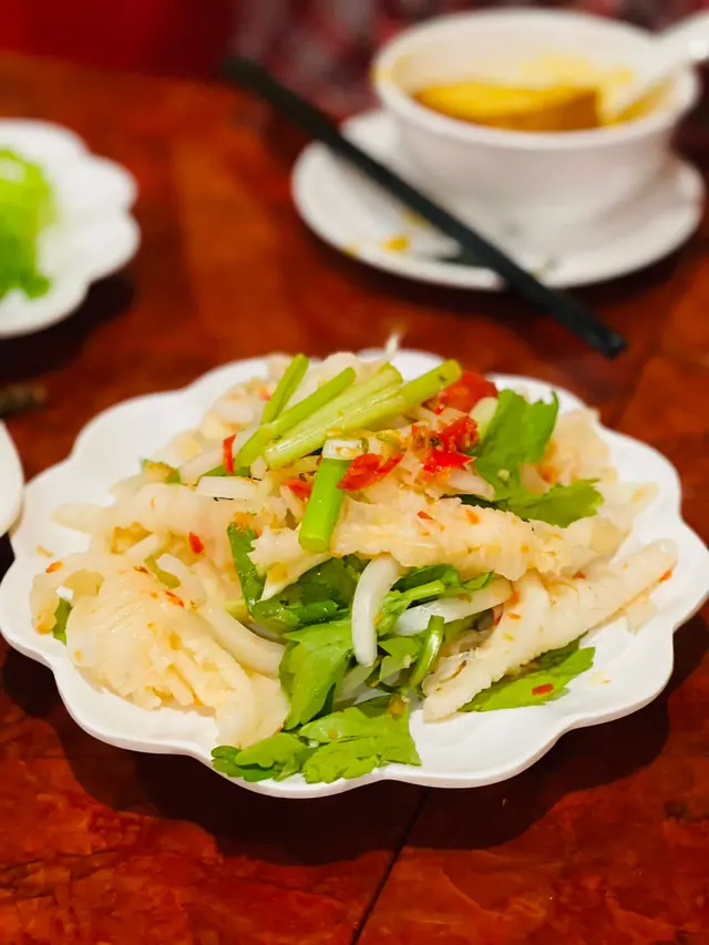 好街坊嘅泰國餐廳 七點幾都差不多滿座係街坊一定食過嘅泰式小店 除咗有泰國嘢食 仲有啲台式飯類 小食等等 一次過滿足晒鍾意食台灣同泰國菜嘅朋友仔------------------------------💖麻辣魚皮 $68其實佢喺台灣小食 但可以喺呢間泰國餐廳食到勁辣 好爽口 好似食緊海蜇咁做前菜好開胃 💖焗蒜蓉包 $32焗得好脆口 好食! 💖黃咖喱牛腩 $82呢道菜相對普通 咖喱汁偏淡仲要唔辣嘅 最後拎嚟點蒜蓉包食 💖泰式白雲鳳爪 $72呢碟味道正正常常 冇特別驚喜落咗超多辣椒整個沙律汁好辣🌶️🌶️ 但甜甜酸酸咁都幾好味 💖冬陰功大蝦炒飯 $74好特別嘅配搭平時都係食開菠蘿炒飯 好鍾意飲冬陰功 就揀咗呢個配搭 一碟嘅價錢食到兩碟嘅味道🤣炒飯係乾身嘅 好夠鑊氣冬陰功嘅香味同啲炒飯好match 少少辣同酸 更加帶出大蝦嘅鮮味🦐 💖芒果糯米飯 $55芒果偏酸🥭🤭配埋甜甜地、淋左椰汁嘅糯米飯反而食落冇咁heavy作為甜品幾好~ 💖龍眼冰 跟餐嘢飲 唔會太甜解辣一流------------------------------成間餐廳好有人情味 有茶餐廳嘅感覺但係食到泰國同台灣嘅嘢食 好特別 值得一試查看更多
