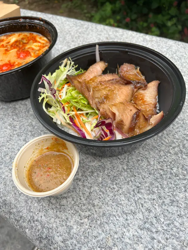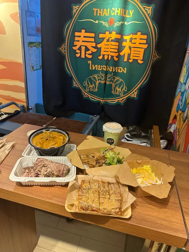 睇落店舖細細但勁有驚喜,餐廳只係做外賣,味道正宗之餘,份量同價錢都真係好驚喜。誇張D講,如果住附近的話我相信我可以日日外賣都得。泰式秘制豬頸肉飯 $49豬頸肉都多片,燒到本身個表面脆脆地好香再切片,再淋左D蔥香嘅燒汁上去成個味都好好食。同埋又有D沙律菜跟埋,成個口感即時無咁油膩黄咖喱牛筋腩飯 $55咖喱有好香香料味,微微嘅辣味,咖喱味好濃。有幾舊牛筋腩,煮得好淋筋位好軟牛味幾香,咖喱撈埋個白飯一齊食會停唔到口花生香蕉煎餅 $38係我暫時食過最好食嘅香蕉煎餅,擠滿左花生醬同埋煉奶仲要有埋花生碎粒。煎餅個底係有一層好脆嘅脆片,咬落係咔咔聲個種脆,好香好脆好好食火山骨飯 $45都幾誇張,真係成條火山排骨肉。條排骨肉豬肉勁淋,軟骨位都可以食到咬得開冬陰功海鮮湯 $25雖然細細碗,但係有唔少海鮮好足料,有蝦有青口有魷魚,味道夠酸夠辣勁開胃泰式奶茶 +$13跟餐加錢,個茶味幾香,泰茶飲佢個茶香同甜味幾好飲…查看更多