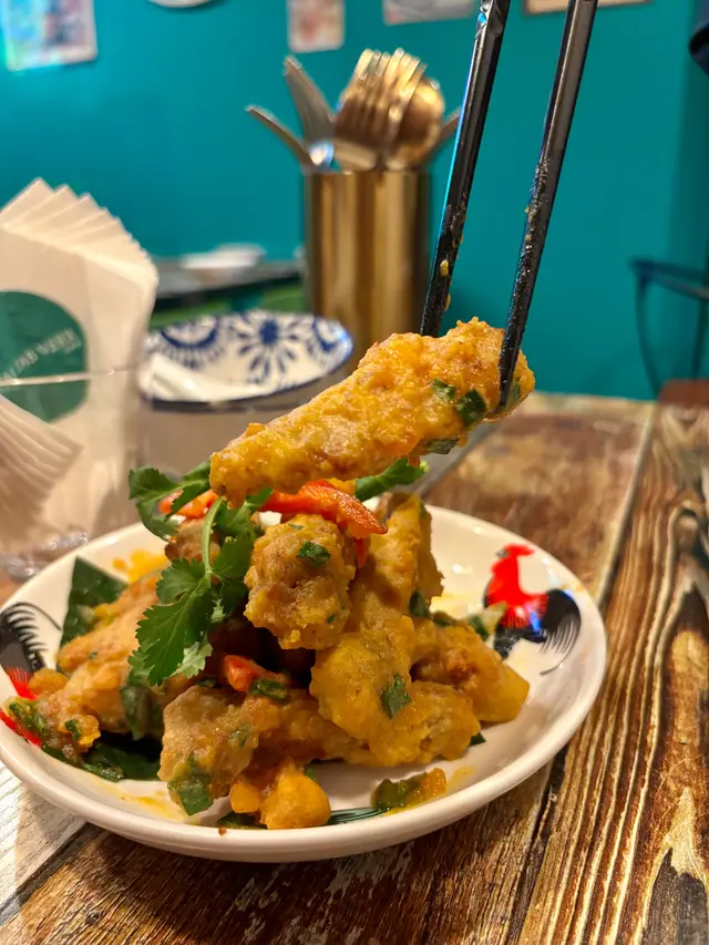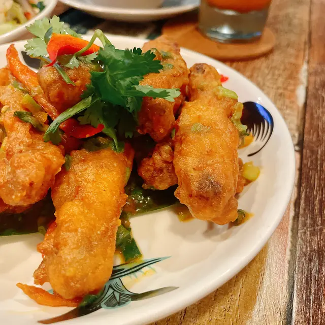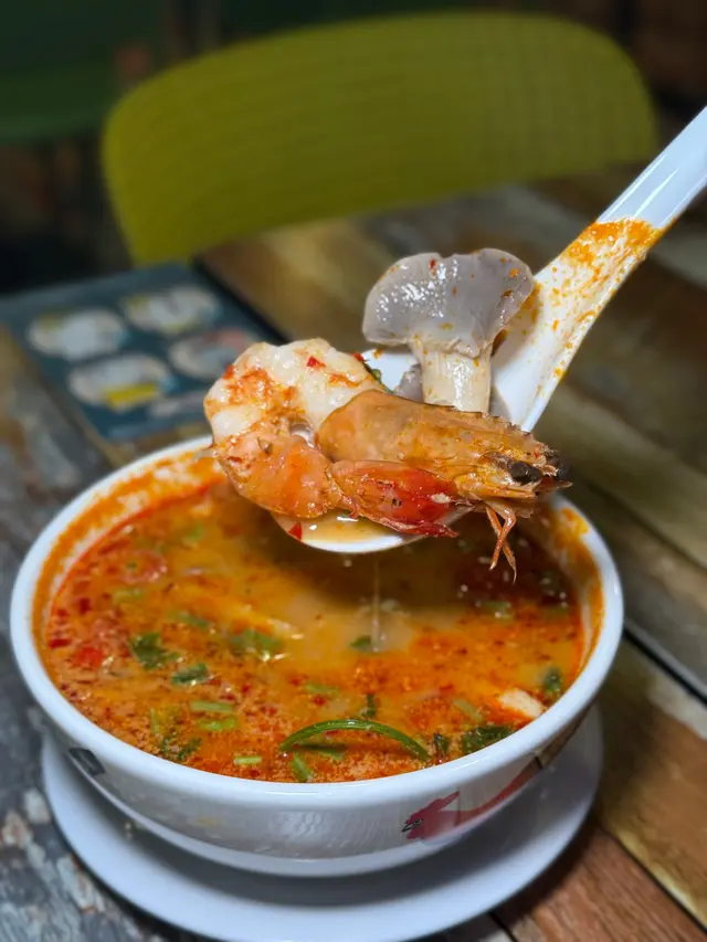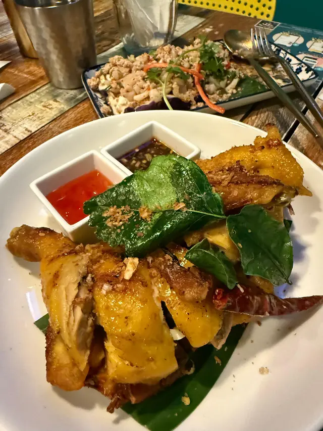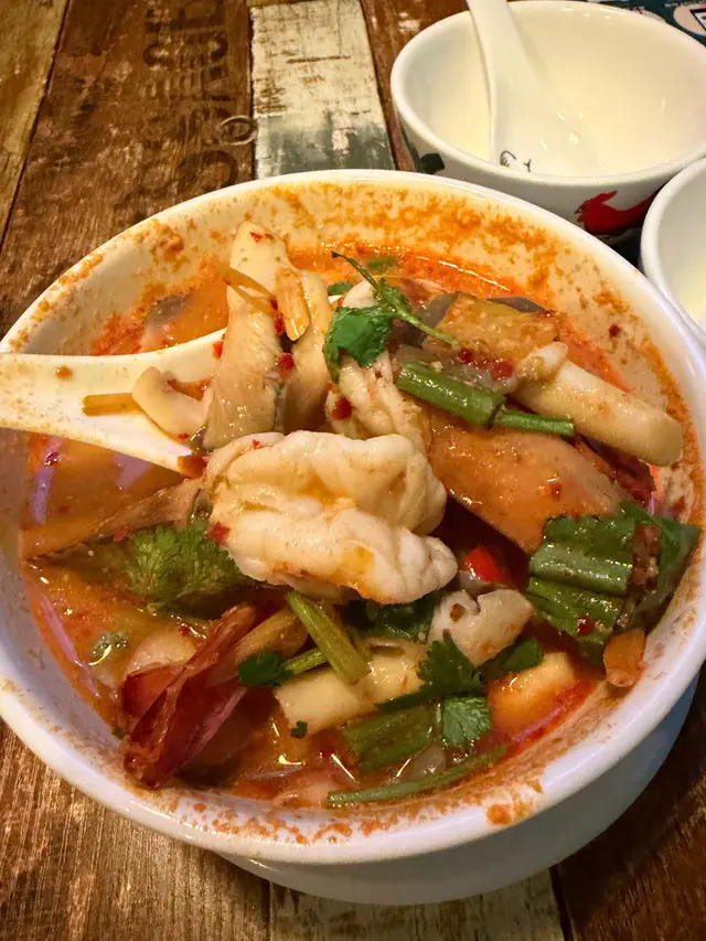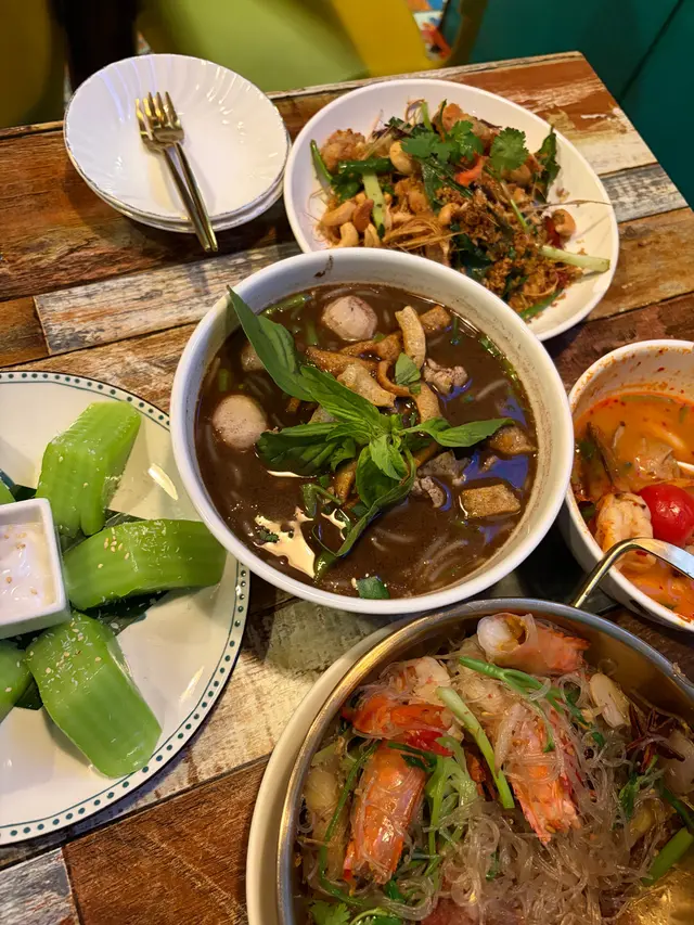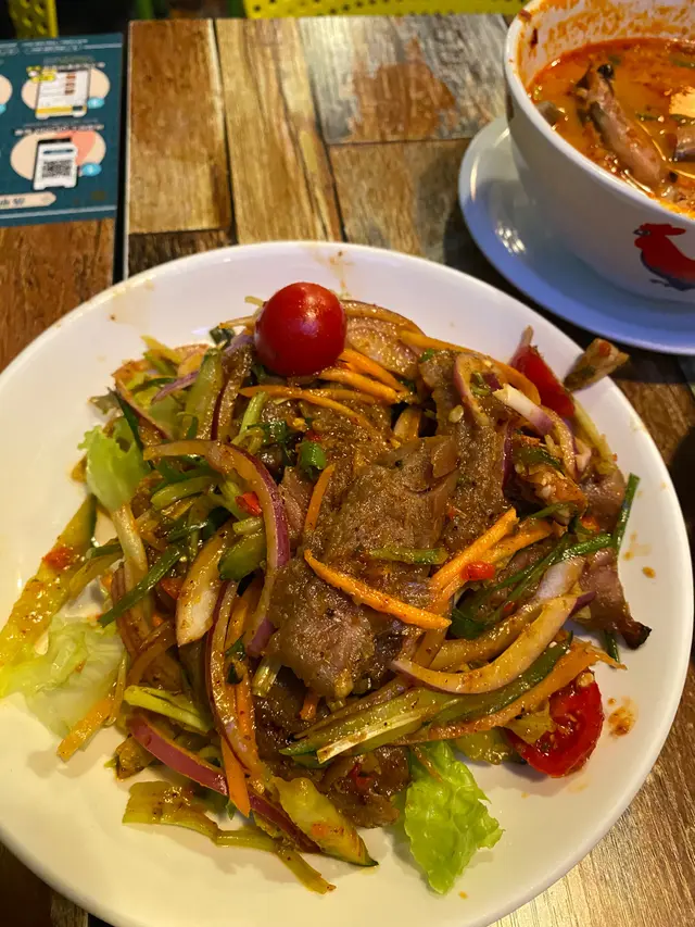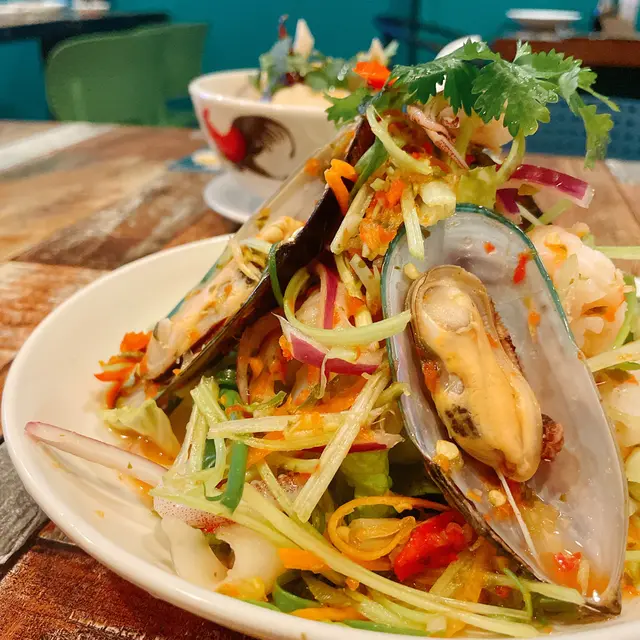 💙藍色同💚綠色都係屬於泰國每星期嘅幸運顏色~今次嚟到位於西環嘅✨泰誇張,就係以湖水綠(藍)主調的裝潢、配搭復古民族風地磚及舊廣告板裝飾,未食已經加分!打開Menu,食物款式種類都好多,價格相宜~我同朋友order咗5樣嘢share~🥗Papaya Salad 木瓜絲沙律清新的代表,擺盤精緻,份量十足,宛如一座小山,加上酸甜的調味醬,口感脆嫩😆清爽醒胃。 🌱Spring Roll (veggie) 素春卷皮薄餡多,鮮菇味最突出,搭配甜辣醬、即炸脆卜卜好好食!🍲Tom Kha Gai 椰汁雞湯超香椰汁味呀!椰漿的濃郁與檸檬草、南薑的香氣完美結合,湯底柔滑,雞肉鮮嫩多汁,加上菇菌及蕃茄仔好豐富,