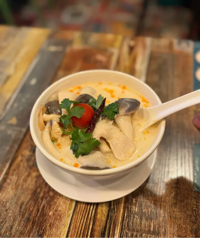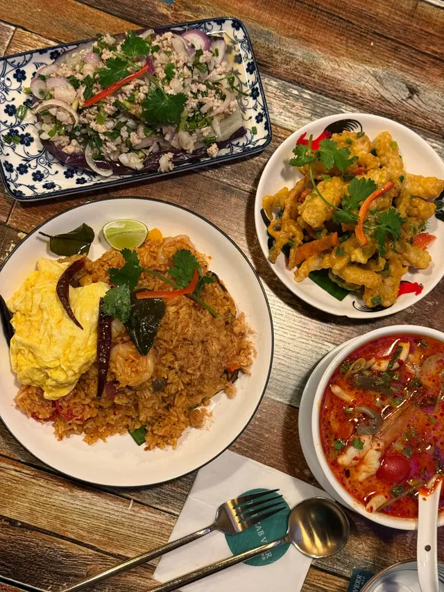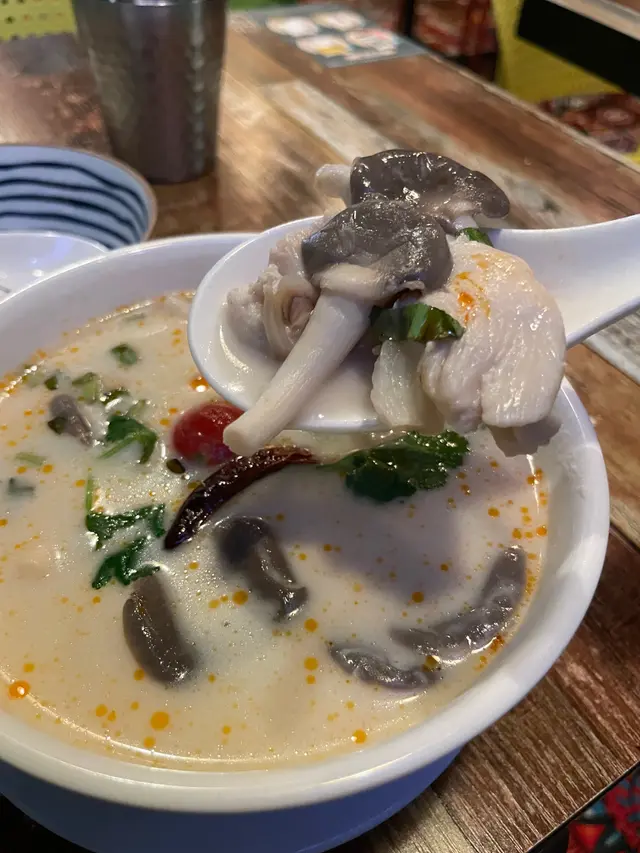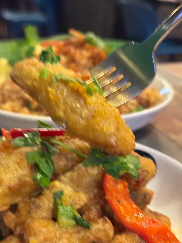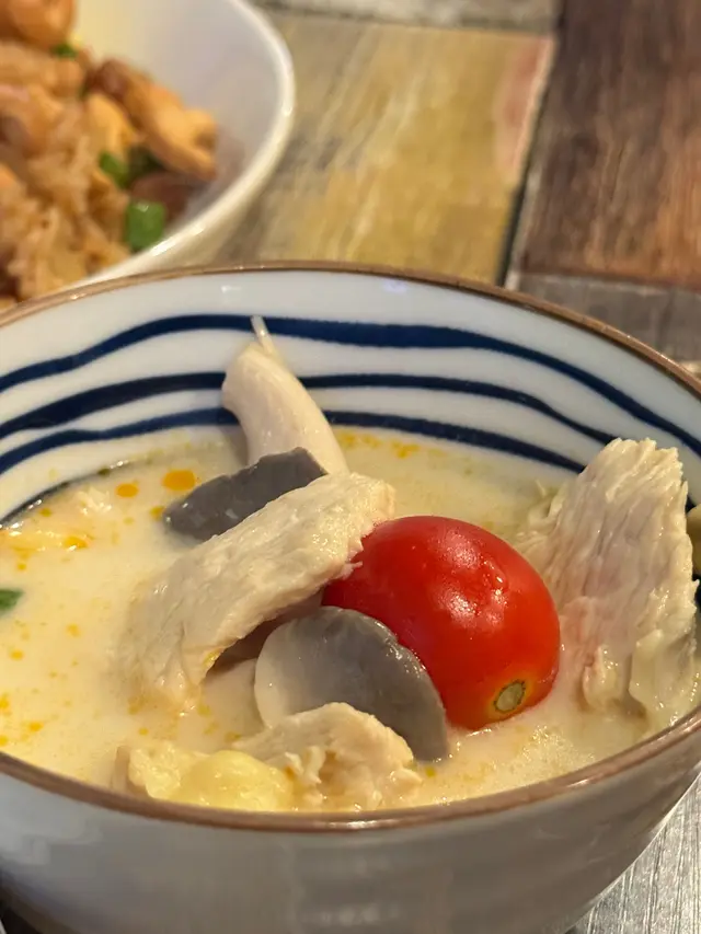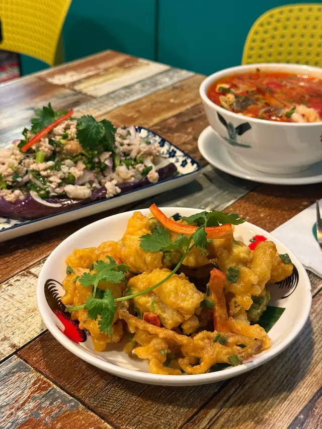 今次同朋友去咗西環呢間「泰誇張」食泰菜,一入門口就俾佢嘅花房裝修吸引住!每張枱都放咗新鮮玫瑰花,角落仲有職員即場插花,成個環境浪漫到呢~我哋叫咗個四個嘢食兩個飲品,人均$285食到勁滿足!🌹 環境同服務▪️ 餐廳似溫室花房,周圍都係綠綠色為主題同鮮花▪️ 每張枱都有新鮮玫瑰,女生見到實心心眼▪️ 職員態度友善,會耐心介紹菜式▪️ 地點方便,香港大學站行幾分鐘就到🍗 鹹蛋黃雞翼 ($108)|邪惡之選雞翼炸到金黃脆皮,面頭沾滿流沙級鹹蛋黃醬,咬落去鹹香爆棚!最正係個皮脆到似食緊蛋黃脆片,入面肉汁依然鎖住,必點!🍚 芒果海鮮炒飯 ($128)|驚喜創意真係第一次見芒果炒飯!用咗新鮮呂宋芒果粒,甜到似食緊甜品~炒飯底夠乾身,有大隻蝦同甜甜豬肉乾絲,鹹甜交織好過癮!🥗 海鮮泰式沙律 ($108)|清爽開胃超大碗!有齊大蝦、青口、魷魚仲有。個汁調得啱啱好:酸中帶辣仲有少少甜,辣度溫和,唔食得辣都接受到~🍲 椰汁雞湯 ($78)|溫柔版冬陰功湯底係奶白色,椰香味好出!比起傳統冬陰功,呢款更溫和順喉,好足料好多菇,選用咗雞胸肉啖啖肉,飲完成個胃好舒服~🥤 飲品|泰式風情· 泰式奶茶 ($48):橙紅色好搶眼,茶味濃得嚟唔澀,甜度適中· 泰式椰子奶 ($48):冰涼解渴,椰香天然唔假今餐真係由頭驚喜到尾,尤其係芒果炒飯同花房環境,絕對會再encore!推薦俾想食特色泰菜同埋鍾意打卡嘅朋友~…查看更多