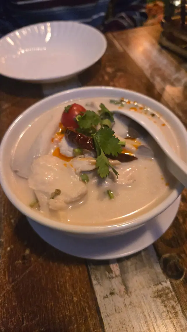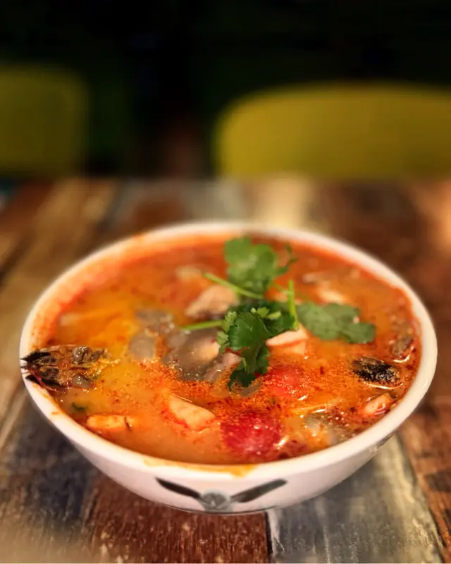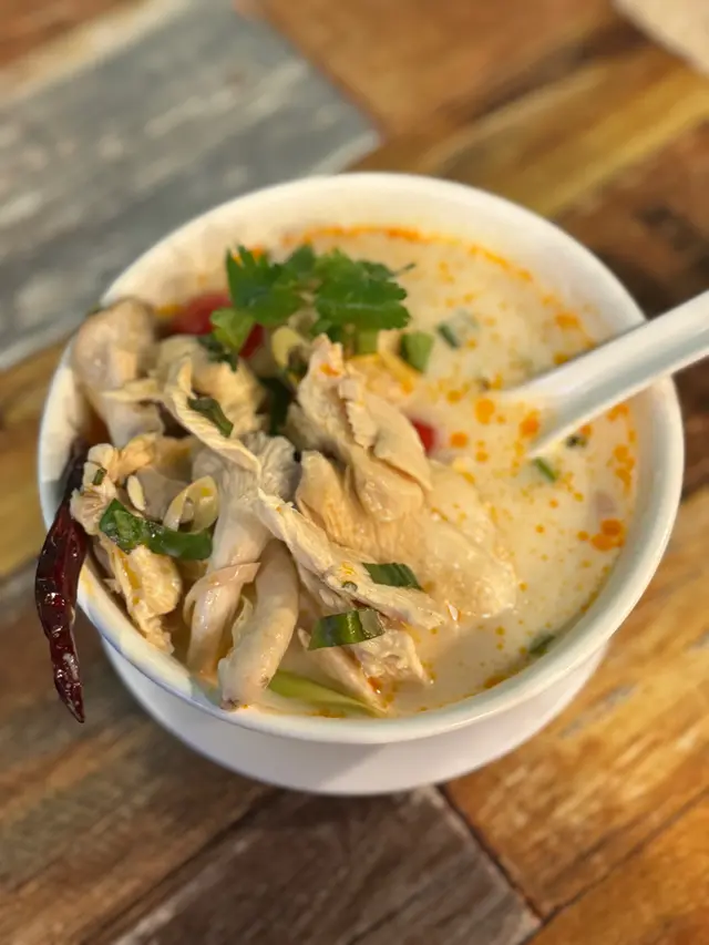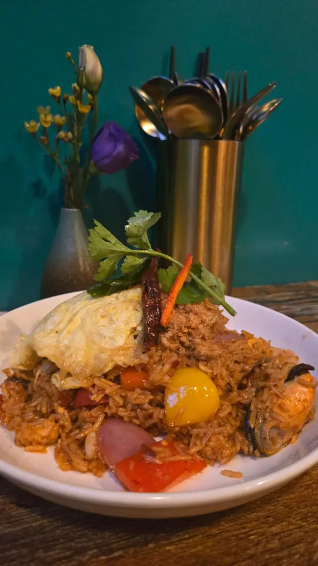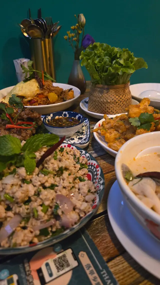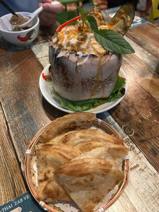 今次同朋友去咗西環呢間「泰誇張」食泰菜,一入門口就俾佢嘅花房裝修吸引住!每張枱都放咗新鮮玫瑰花,角落仲有職員即場插花,成個環境浪漫到呢~我哋叫咗個四個嘢食兩個飲品,人均$285食到勁滿足!🌹 環境同服務▪️ 餐廳似溫室花房,周圍都係綠綠色為主題同鮮花▪️ 每張枱都有新鮮玫瑰,女生見到實心心眼▪️ 職員態度友善,會耐心介紹菜式▪️ 地點方便,香港大學站行幾分鐘就到🍗 鹹蛋黃雞翼 ($108)|邪惡之選雞翼炸到金黃脆皮,面頭沾滿流沙級鹹蛋黃醬,咬落去鹹香爆棚!最正係個皮脆到似食緊蛋黃脆片,入面肉汁依然鎖住,必點!🍚 芒果海鮮炒飯 ($128)|驚喜創意真係第一次見芒果炒飯!用咗新鮮呂宋芒果粒,甜到似食緊甜品~炒飯底夠乾身,有大隻蝦同甜甜豬肉乾絲,鹹甜交織好過癮!🥗 海鮮泰式沙律 ($108)|清爽開胃超大碗!有齊大蝦、青口、魷魚仲有。個汁調得啱啱好:酸中帶辣仲有少少甜,辣度溫和,唔食得辣都接受到~🍲 椰汁雞湯 ($78)|溫柔版冬陰功湯底係奶白色,椰香味好出!比起傳統冬陰功,呢款更溫和順喉,好足料好多菇,選用咗雞胸肉啖啖肉,飲完成個胃好舒服~🥤 飲品|泰式風情· 泰式奶茶 ($48):橙紅色好搶眼,茶味濃得嚟唔澀,甜度適中· 泰式椰子奶 ($48):冰涼解渴,椰香天然唔假今餐真係由頭驚喜到尾,尤其係芒果炒飯同花房環境,絕對會再encore!推薦俾想食特色泰菜同埋鍾意打卡嘅朋友~…查看更多