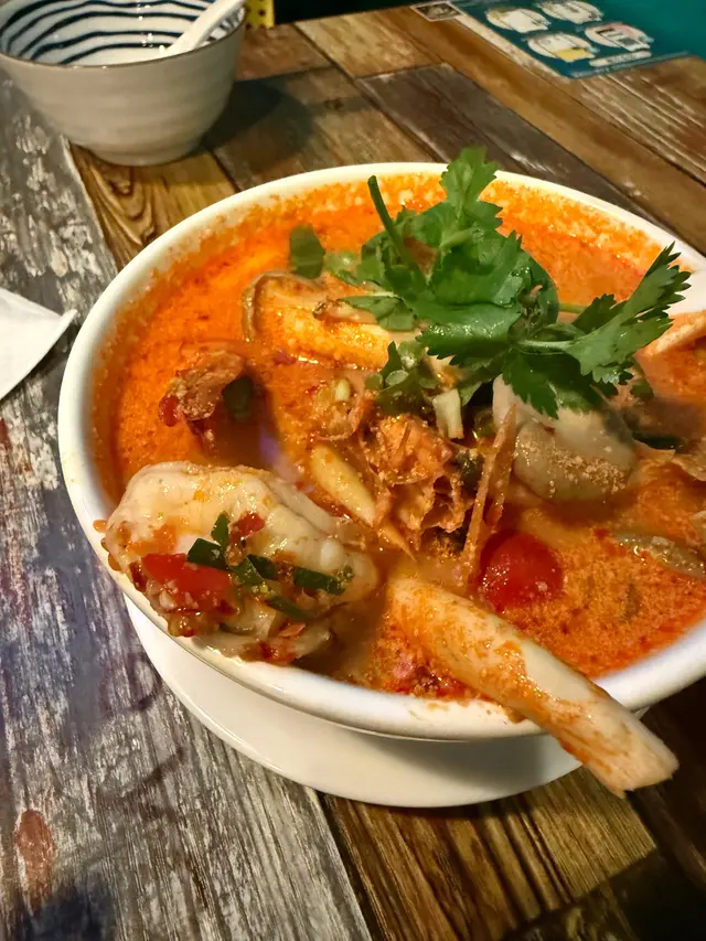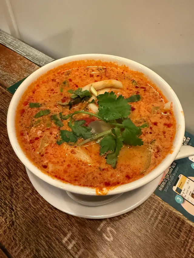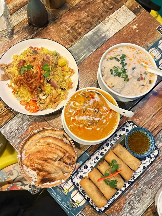 天氣凍凍地最啱飲!🥘Masaman Curry (pork) 馬沙文咖哩 (豬肉)咖哩的風味濃厚,豬肉肉質軟嫩,搭配了馬鈴薯、洋蔥等食材,層次豐富。咖哩味恰到好處,不會過辣又帶微微甜味~🫓 Roti 烤薄餅薄餅烤得酥脆,油酥勁香,齋食已經夠好食,配埋咖哩絕對係perfect 😆🍍Pineapple fried rice 菠蘿炒飯 (牛肉)食親泰菜都幾乎會食嘅菠蘿炒飯~~ 呢度個炒飯做得幾好,粒粒分明、鮮菠蘿肉夠多,加入牛肉、腰果和肉鬆,色彩繽紛又口感豐富!係呢度可以感受返係泰國食嘢嘅感覺☺️估唔到每道菜份量都幾多,一大班朋友食就啱晒啦😁…查看更多