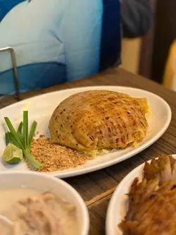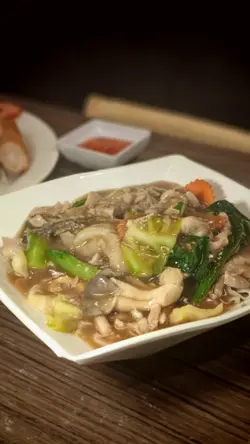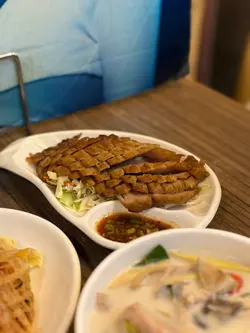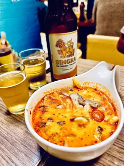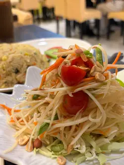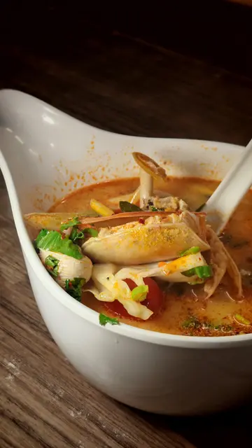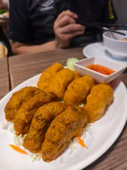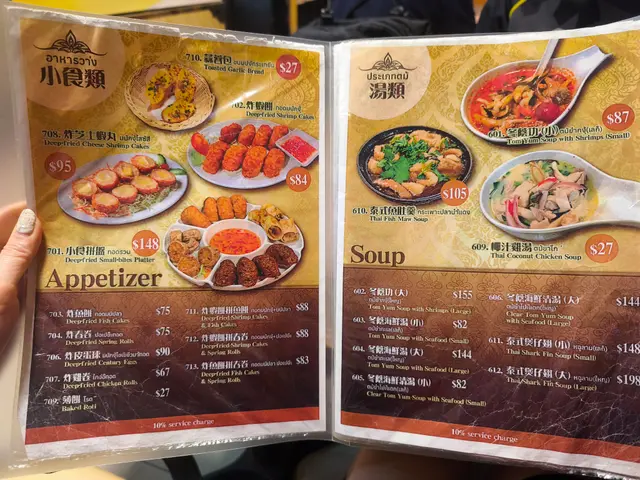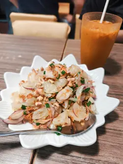 喺朋友極力推介之下,終於嚟到呢間人氣爆燈嘅泰國菜!餐廳位置超方便,城南道直行就見到,而家仲有地鐵直達九龍城,真係懶人恩物~平日六點幾衝到去,好彩仲有最後一張枱,睇嚟下次真係要乖乖book位先得!✨ 冬陰海鮮湯 (小)一上枱就聞到香濃酸味,湯料多到滿瀉!大蝦、魷魚、草菇樣樣齊,酸度夠突出,辣度輕輕哋,飲完成個人都醒神晒~✨ 柚子沙律真心驚艷!柚子肉清甜爆汁,夾住大大隻爽口鮮蝦,魚露嘅鹹香、椰子片香脆同青檸酸味撈埋一齊,開胃到食唔停口!✨ 炸蝦餅拼魚餅蝦餅外脆內彈牙,咬開仲有肉汁;魚餅質感好特別,鬆軟得嚟帶啲香茅香氣,點埋酸甜醬真係邪惡到震!✨ 必食三拼串燒豬牛雞各兩串,全部燒到金黃微焦,肉質嫩滑唔乾柴!靈魂所在係個沙爹醬——濃郁花生香夾住粒粒口感,掛滿串燒真係無得輸~✨ 馬拉盞炒椰菜苗鑊氣十足!馬拉盞鹹香逼入每棵椰菜,勁惹味,簡單小菜都做得咁有層次~✨ 最特別的飲品羅勒葉菠蘿冰:估唔到加咗羅勒葉嘅菠蘿冰感覺咁清新!好香嘅羅勒葉味道~不過唔係個個接受到,有興趣可以試一試🥰泰式奶茶一定走唔甩,老細必點!每道菜都咁正,難怪晚晚排長龍!以後想食泰菜諗唔到第二間,不過切記要訂位啊~…查看更多