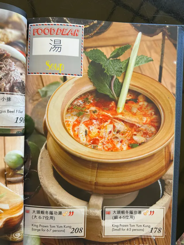 現在香港真的有不少餐廳結業,想吃什麼就要把握時間位於西貢的泰道只營業到5月31日,之後店名就會改掉。朋友說這間泰國菜頗好吃,那就襯還沒轉名前去吃。不知道之後廚師是不是會換掉。入口處有個很大的雕像,還有個浮誇的燈飾。要走到最盡頭才是我們要去的餐廳入口,出面有能看海的室外座位。不過當日剛下完雨,太多的飛蟻只好選坐室內。點了個 大頭蝦冬蔭公湯 (HKD 178/細)細的夠4-5人用,大約每人可以飲到兩碗左右,每人有半隻大頭蝦。 會是偏辣一點,但酸酸辣辣極為開胃。泰道黃金菜 (HKD 128/細)就是將通菜炸成天婦羅。炸粉漿不算太厚,是幾得意的。泰式香燒雞 (HKD 188/半隻) 是朋友推薦一定要點的。燒得很香,連雞皮也燒得十分香脆。當然雞肉仍然是很嫩滑多汁。還有不要錯過這裡的咖喱,點了一款辣和一款有三個辣椒的。椰香清咖喱 (HKD 148) 問了店員說會標示三個辣椒是因為對比其他會稍辣。但其實吃落那辣度真的不太顯,反倒是椰香比較濃。這咖喱我們選了牛,是嫩口的牛肉片。咖喱海鮮 (HKD 168) 是質感比較濃稠的咖喱,個人覺得比前者的更惹味。海鮮包括了青口、魷魚和蝦,配 烤薄餅 (HKD 38) 來吃剛好。飲品點了三款 - Iced Milk Tea (HKD 48) 甜度可以。Lime Soda (HKD 48) 嚐第一口就喝到很重的青檸味,即刻醒一醒神。菠蘿沙冰 (HKD 68) 這個好大杯,溶得有點快。…查看更多