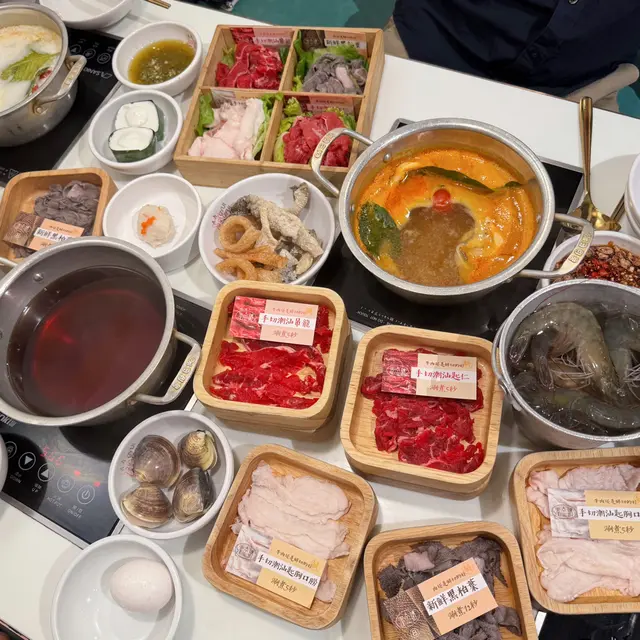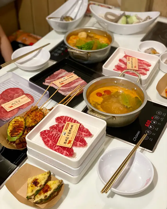 成日經過荃灣海之戀呢間泰金鍋俾佢吸引,今日終於有時間嚟食啦!呢度除咗可以有牛肉火鍋放題之外,最特別就係可以有流水蝦放題即撈即煮!有多款套餐可選擇: 1️⃣牛肉火鍋餐有四款,其中包括美國產極選肩胛牛小排餐2️⃣椰漿文昌雞鍋雞皮薄肉嫩,以椰漿烹煮,天然甜味,突出雞肉的清甜3️⃣Gym Gym 自控套餐採用椰子水作為火鍋湯底,配以優質蛋白質,健身人士或注重健康人士都非常適合是日選擇:120分鐘美國產極選肩胛牛小排餐🥣有九款湯底可以選擇,客人可以自選一人一鍋火鍋湯底🔸馬來娘惹叻沙鍋湯底較濃夠惹味,用嚟滾鮮蝦就非常合適啦!🔸藥膳豬骨白湯鍋如果鍾意清清哋嘅朋友呢款藥膳湯都係唔錯嘅選擇!🔸肉類🔸美國產極選肩胛牛小排🔸澳洲產草飼羊肩肉🔸澳洲產下肩胛肉眼肉🔸嚴選特級牛胸腹🔸特選豚梅肉🔸 流水蝦放題🦐🦐🦐活海鮮即捕即煮,客人可以喺現場魚缸內用冰桶撈取流水蝦及新鮮活蜆,保證生猛新鮮,用冰整暈啲蝦先再放落火鍋內煮熟,就不用怕生蝦彈出來😆,蝦肉彈牙新鮮👍🏻可以無限encore啊😋🔸熱盤自助吧 (多達40款以上的食物)食物種類非常多,包括有 泰式串燒、冬陰功湯、滷水豬腸、豆腐及蘿蔔、麻辣鴨舌、海南雞、椒鹽豆腐、黃咖喱雞件、點心蝦餃燒賣、炸物包括炸洋蔥、炸魚皮、響鈴、蝦片、魚片頭,泰式公仔麵🔸泰式甜品除咗多款雪糕、雪條之外,仲有泰式甜品包括椰汁糕、斑斕糕等等,仲有現場即制刨冰,客人可隨喜好加入多款配料,仲有木瓜雪耳糖水潤一潤🔸除咗罐裝汽水啤酒之外,仲有多款泰式飲品可供客人選擇…Read More