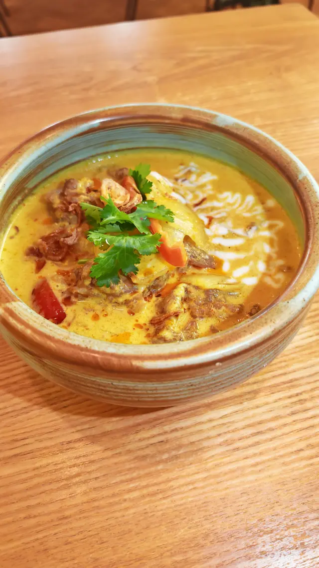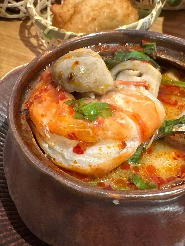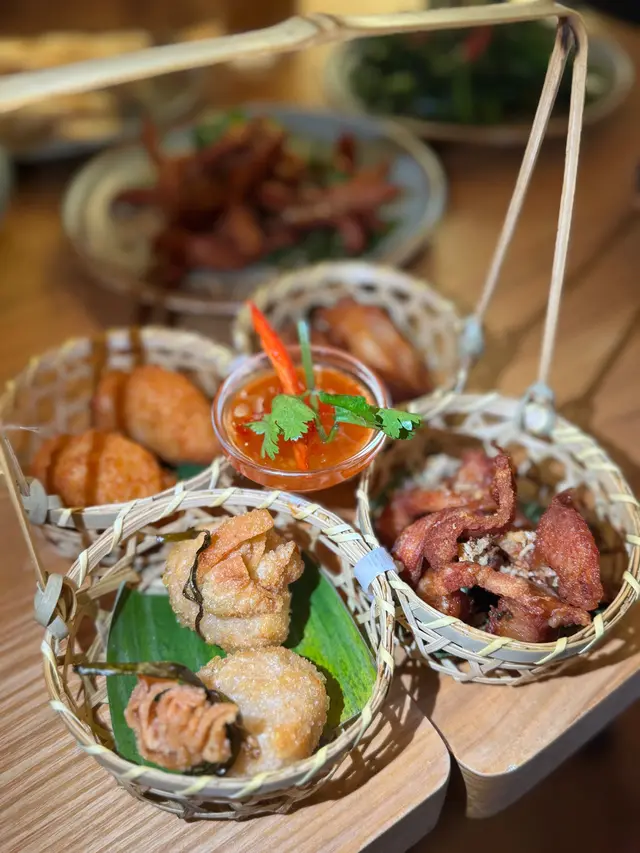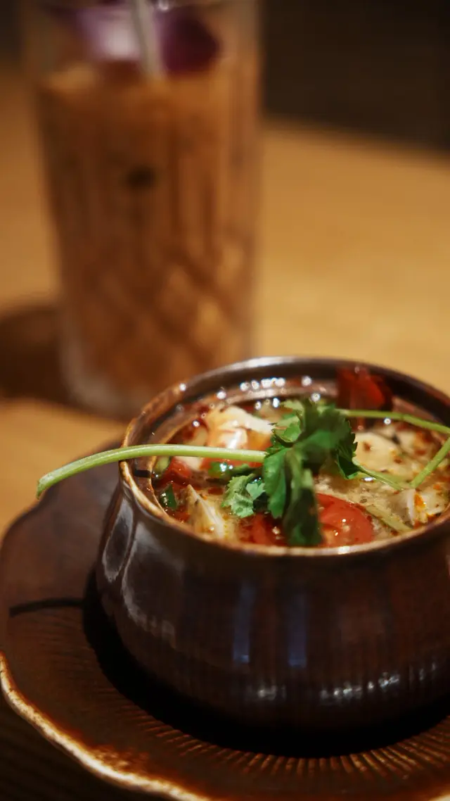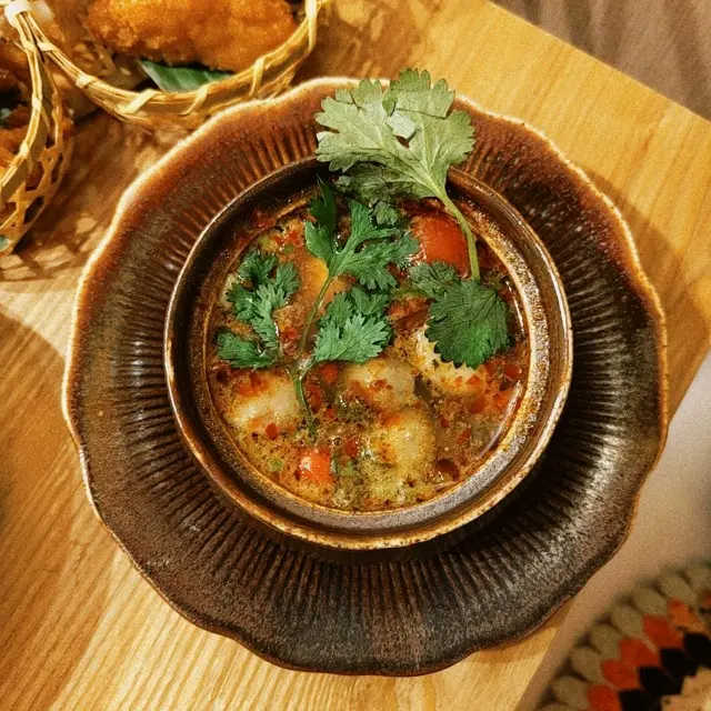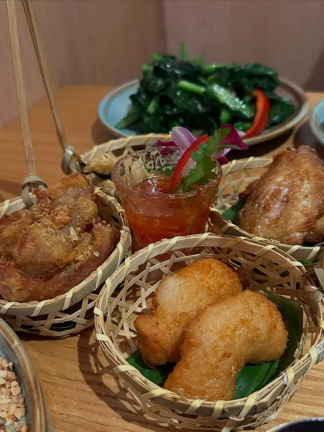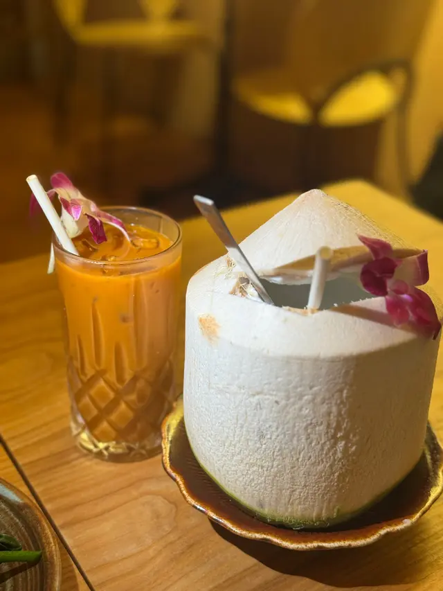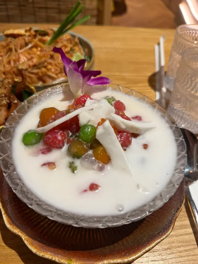 🍡water chestnuts in coconut milkwe added a 🧺snack platter for just +$1, LOVE the deep-fried prawn cakes & pork neck! 🦑grilled squid and 🌶️stir-fried kale were also pretty good. everything was super authentic!!喺灣仔咁多泰國菜當中發現咗間隱世好餐廳!呢度嘅大廚原來係米芝蓮餐廳做過,每樣嘢食都正宗。$398二人套餐好抵食:🥥冬陰功/ 椰子雞湯🥘青/黃咖喱 牛/雞/豬肉🍗金邊粉🍡椰汁冰冰馬蹄爽🍹2杯飲品(我鍾意佢哋嘅菠蘿冰!)另外加$1就有🧺小食拼盤,入面嘅炸蝦餅同豬頸肉超好味!🦑燒魷魚同🥬炒芥蘭都唔錯,但我哋實在高估左自己,個套餐份量十足,我哋最後飽到上心口!…查看更多