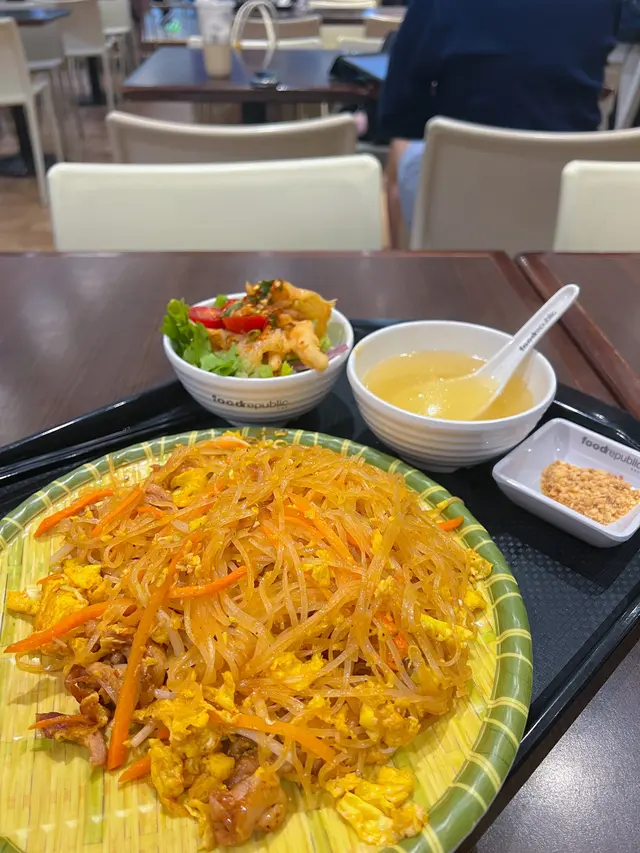 🍜 泰式炒金邊粉(夏日開胃之選) 🌶️🌶️🌶️🌶️(5🌶️為最高)大角咀搵食,嚟到人氣泰式小店——泰·雅,主打地道泰國風味,環境乾淨企理,foodcourt位置寬敞,坐得舒服又方便。今次試咗佢哋嘅泰式炒金邊粉,酸酸甜甜好開胃,夏天食一流!金邊粉炒得唔油膩,配料有嫩滑雞肉、蛋、紅蘿蔔絲、芽菜等,份量十足,大大碟食完好滿足。套餐仲包例湯,升級加$13配4件單骨雞翼,外層香脆,肉汁飽滿,調味岩岩好,單骨設計食落方便又唔失儀態,性價比超高!🍳 泰式甲拋肉碎煎蛋飯(香料滿分) 呢個飯真係must order item!肉碎炒得香噴噴,香料落得足,味道濃郁惹味,送飯一流。份量多到驚人,煎蛋亦煎得靚,邊脆心嫩,成碟飯好有泰國街頭風味,價格親民,抵食又飽肚!📍泰·雅(大角咀海庭道18號奧海城二期1樓大食代4號舖)大角咀美食 #泰式炒粉 #甲拋肉碎 #泰國風味 #香港美食 #打卡熱點 #食咗未 #拍拖好去 #foodcourt搵食 #性價比高查看更多